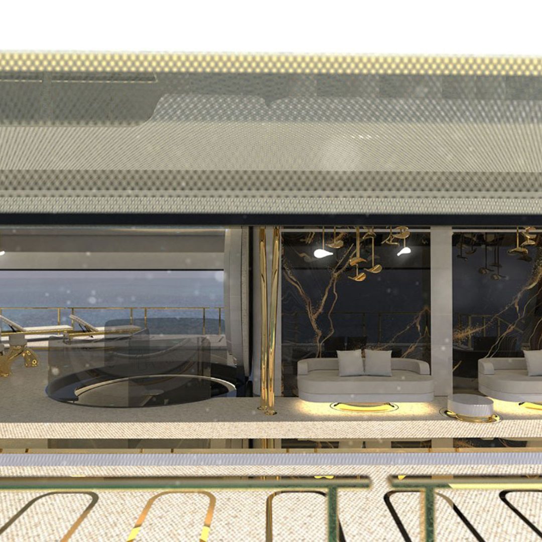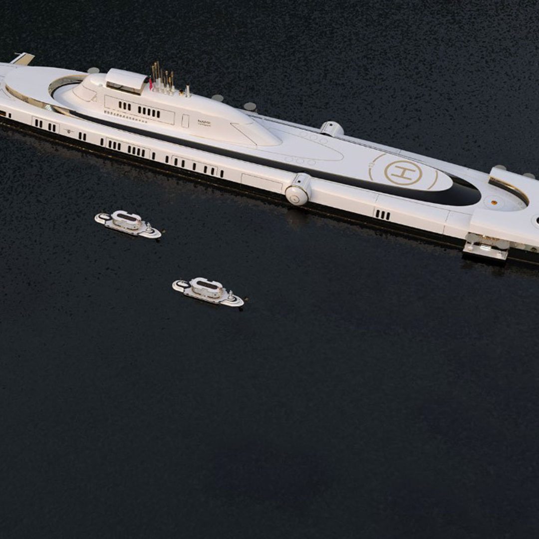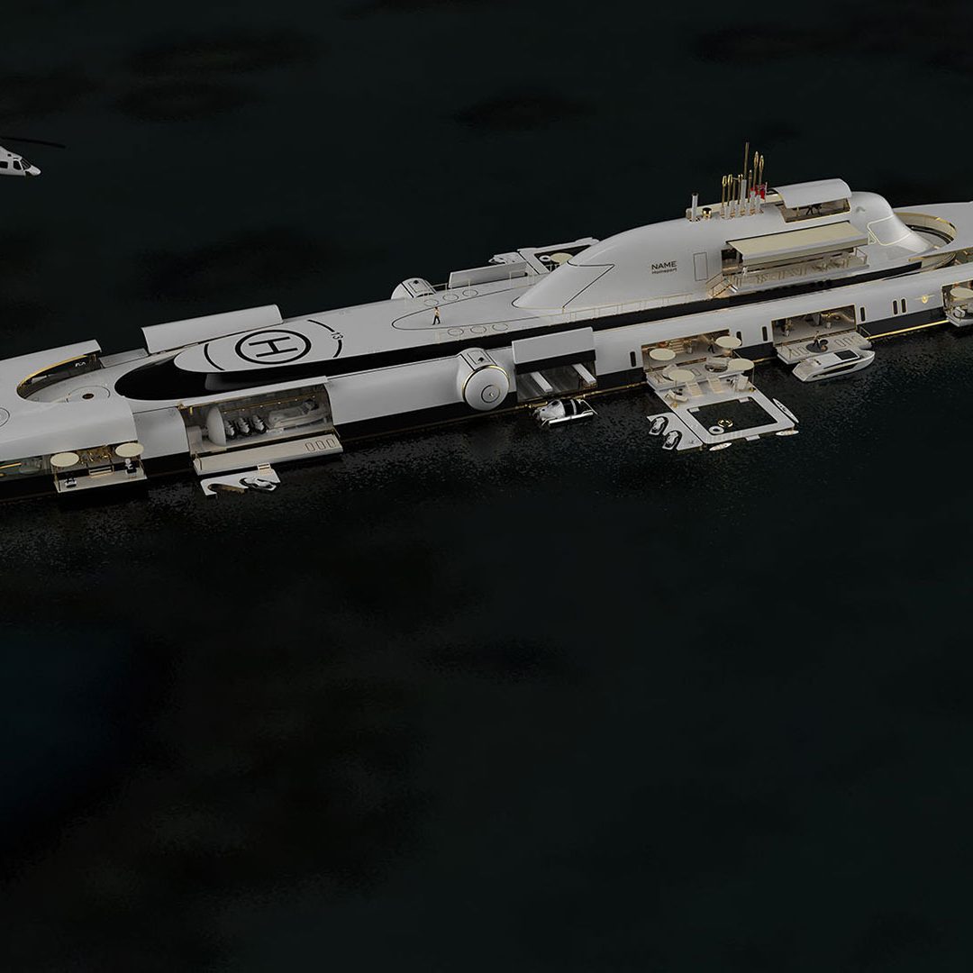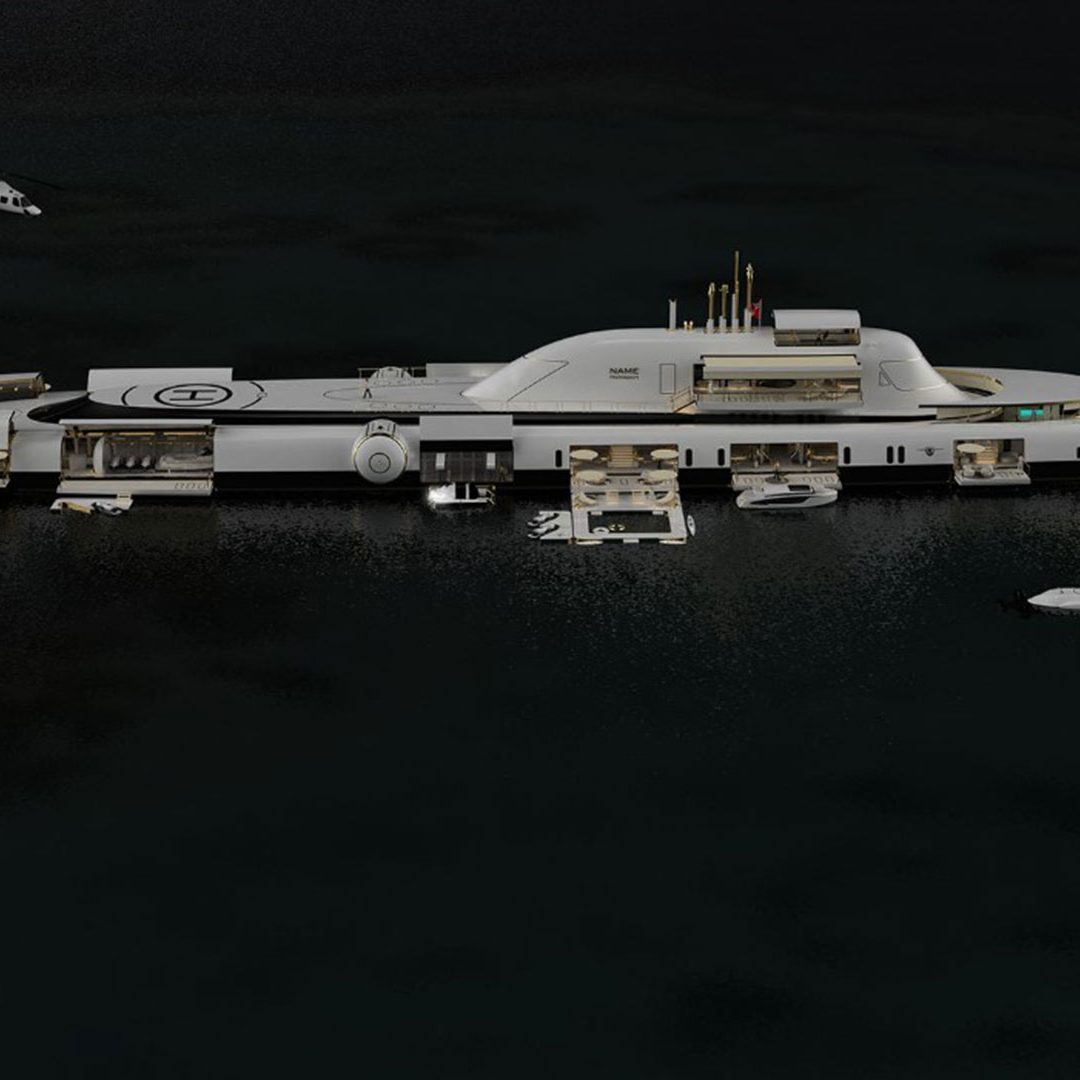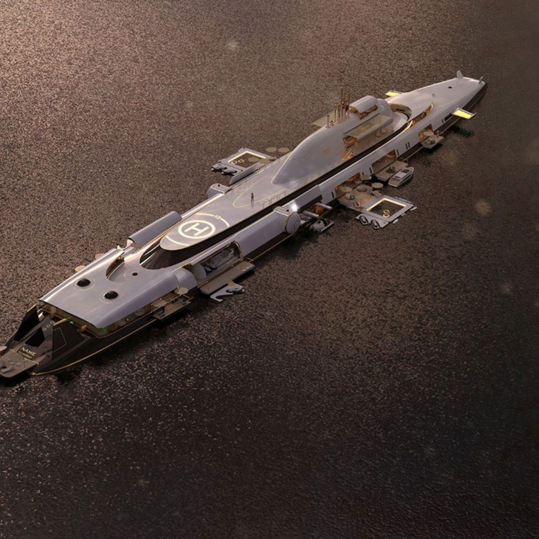Tra le varie chicche troviamo infatti delle superfici panoramiche in vetro per poter godere di una vista unica in immersione (ma anche a filo d’acqua) e immancabili comfort come cinema e area gym. E a quanto elencato si aggiungono anche le piscine (che sono due e simmetriche nonché disposte sui lati dello scafo) e l’eliporto per l’atterraggio dell’elicottero.