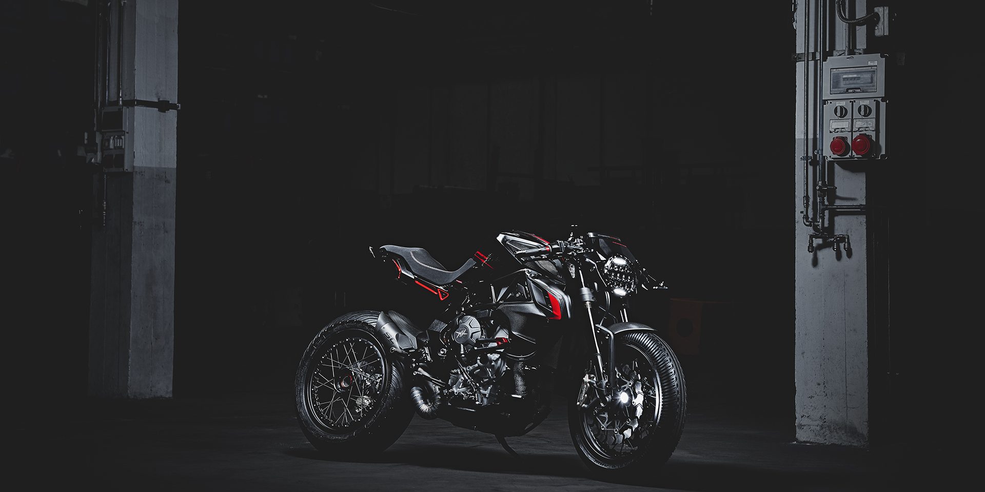 La base della MV Agusta Dragster Blackout è una Brutale Dragster, che Valter Esposito, fondatore dell’omonima azienda e ideatore del concept, ha voluto trasfigurare in una “techno-café racer” che strizza l’occhio al mondo delle competizioni, a quello del tuning automobilistico e, soprattutto, a quello delle café racer, grazie a dettagli come gli inediti semimanubri e il nuovo gruppo ottico full LED all’anteriore, attivabile grazie a interruttori laterali disposti in modo tale da divenire a loro volta elemento di design.