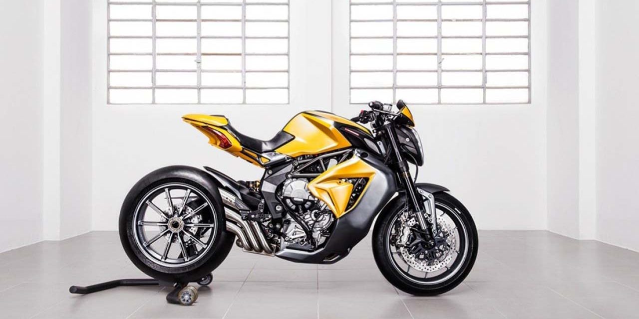 Prendete una delle moto maggiormente dotate di fascino e personalità tra quelle in circolazione, affidatela nelle sapienti mani di un ottimo preparatore e… Preparatevi a rimanere stupiti. Si chiama MV Agusta Dragster by Officine GP Design, porta intrinsechi sul suo corpo i segni della creatività dell’atelier torinese e riprende nelle grafiche l’ispirazione stilistica adottata sulla F3 800 AMG, ovvero cromatismi e tratti tipici delle vetture della Casa di Affalterbach.