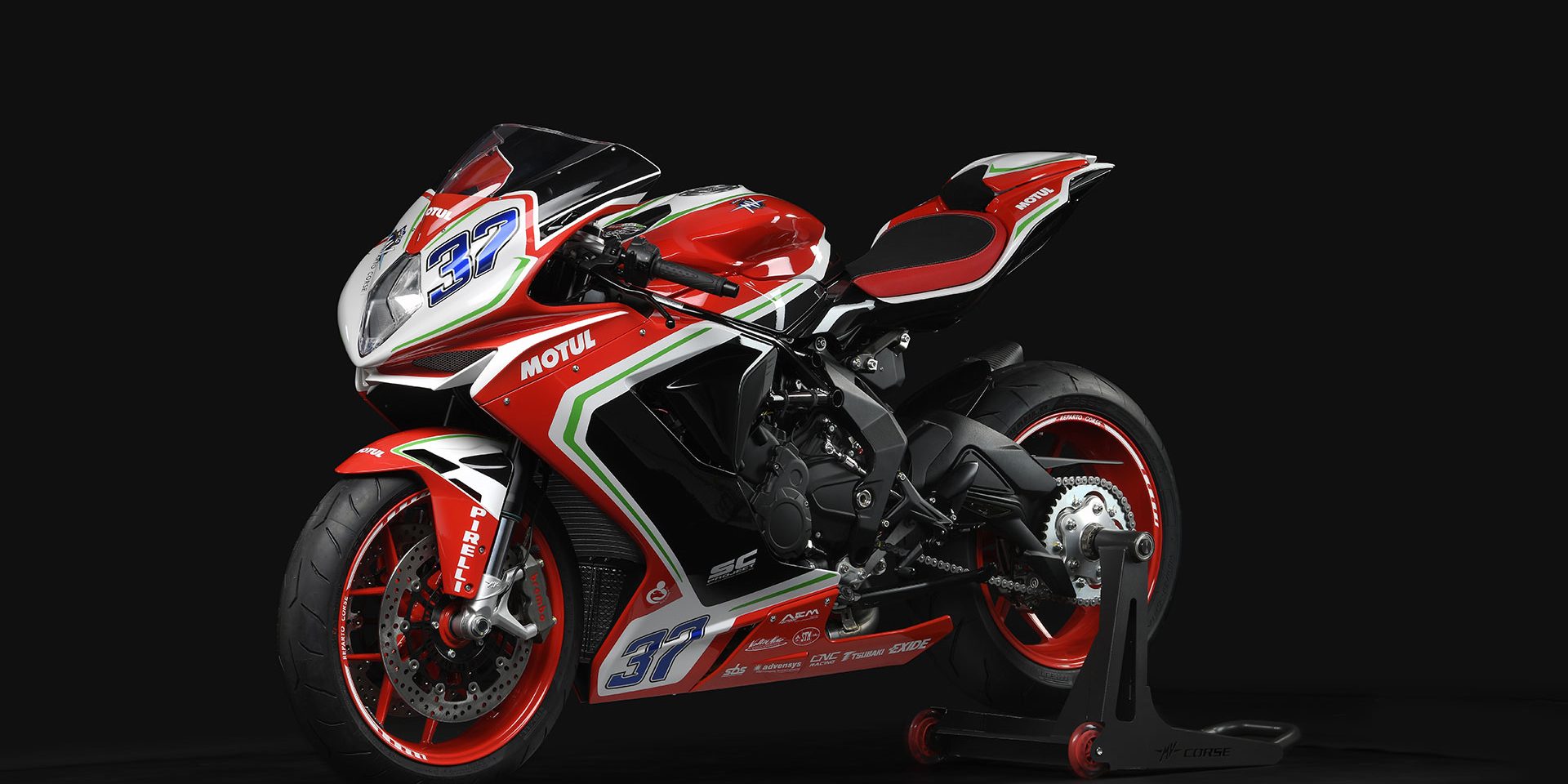 Ciascun esemplare della MV Agusta F3 RC M.Y. 2019 è fornito con un kit dedicato, che contiene l’impianto di scarico in titanio con silenziatore SC-Project e tubo di raccordo, la protezione paratacco in fibra di carbonio e le staffe di fissaggio in alluminio. La centralina specifica è inclusa nel kit, insieme alle leve freno e frizione in ergal, a una corona dedicata, al cavalletto centrale e al telo coprimoto. Ciascun esemplare è accompagnato dal certificato di autenticità.
