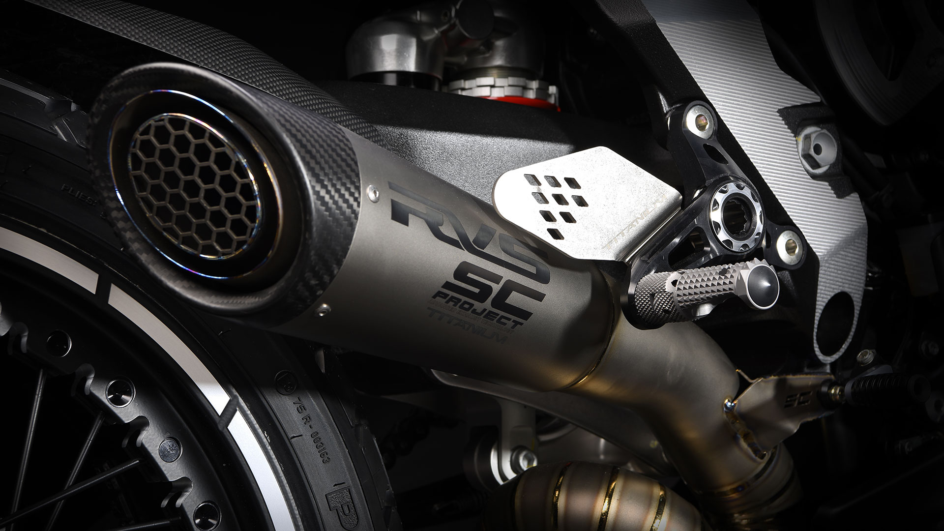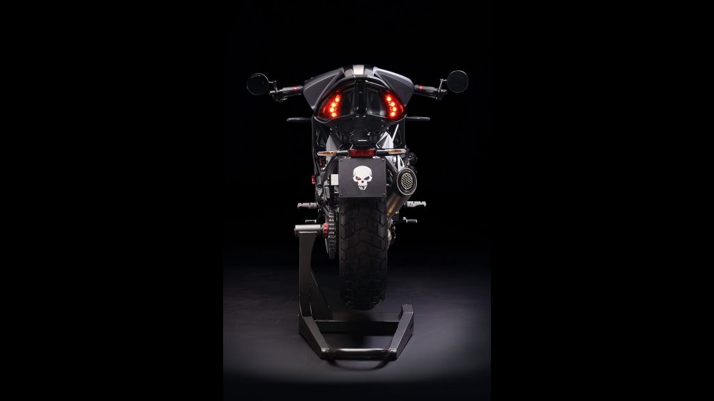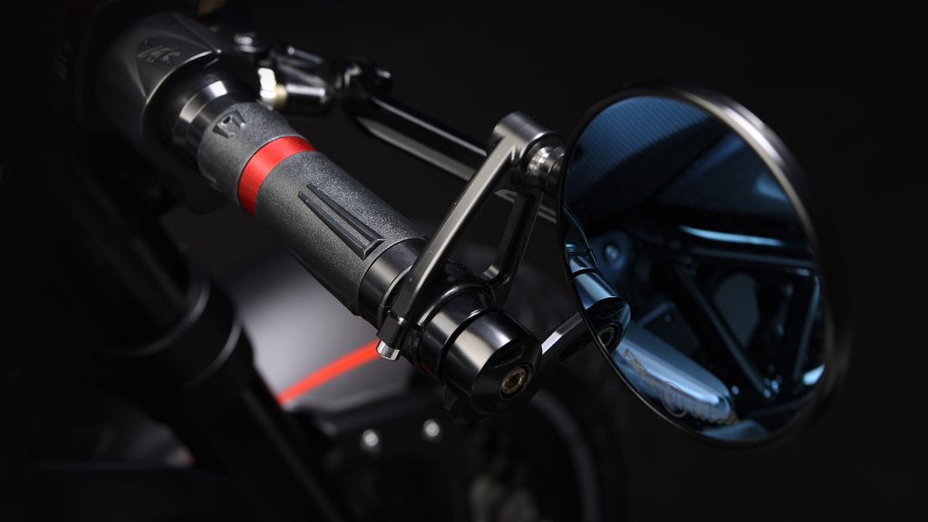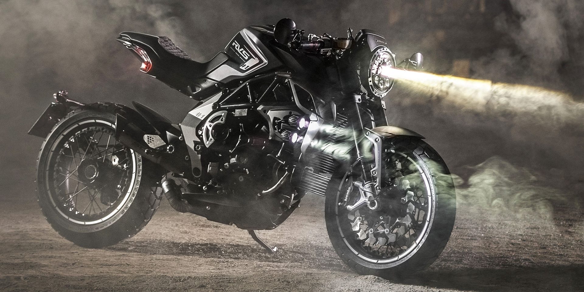 Dischi Braking Sunstar, cerchi a raggi Kineo (gommati con pneumatici Pirelli MT 60 RS semi-tassellati), impunture a vista, dettagli rossi presenti pressoché ovunque e un minacciosissimo (nonché inedito) teschio completano la caratterizzazione stilistica della MV Agusta RVS#1, che arriverà sul mercato in tiratura limitatissima (come testimoniato dalla piastra che indicherà numero ed esemplare di questa serie speciale) ad un prezzo ancora da comunicarsi.