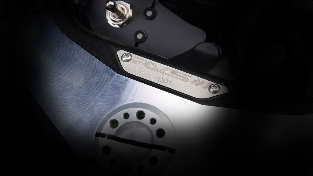 Basata sulla Dragster 800, la MV Agusta RVS#1 è una moto dal carattere forte e marcato. A testimoniarlo sono prima di tutto i suoi numeri: si parla infatti di 150 CV di potenza (a 12.800 giri) su soli 160 kg di peso. Questi i dati di cui il 3 cilindri da 800 cc (ora omologato Euro4) si fregia grazie al ricorso a numerose soluzioni, come ad esempio le piastre laterali e il supporto del gruppo ottico anteriore (a LED e coadiuvato nel funzionamento da una doppia fanaleria – sempre a LED – verticale posta a lato del radiatore) in lega leggera ricavata dal pieno e tantissimi particolari in titanio (tra cui lo scarico forgiato SC-Project), i quali hanno permesso al costruttore di abbattere di 8 kg il valore indicato dall’ago della bilancia rispetto alla già leggerissima Dragster 800 RR.