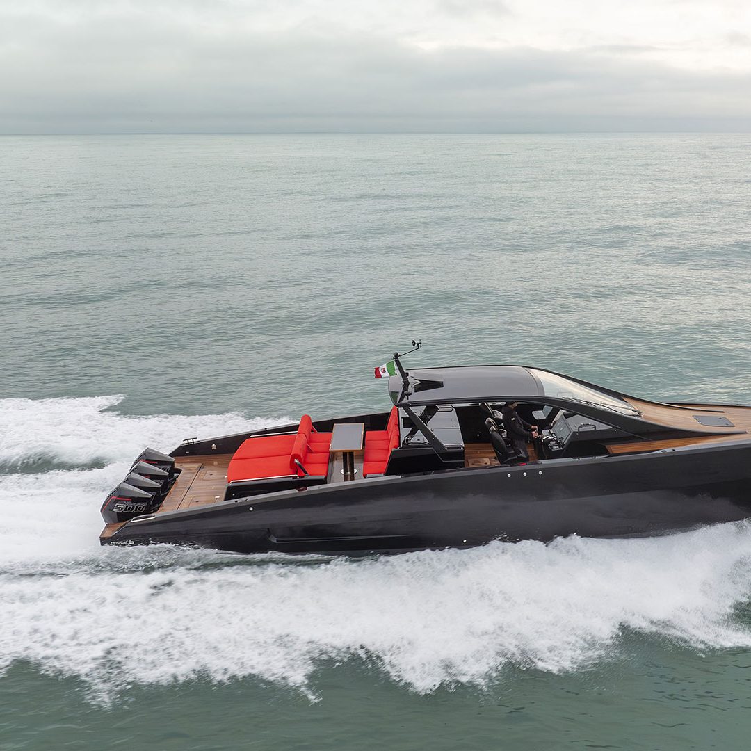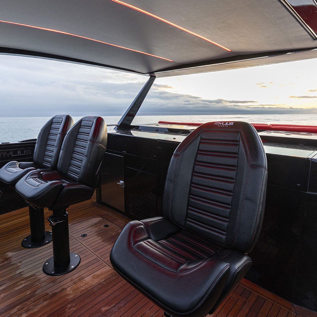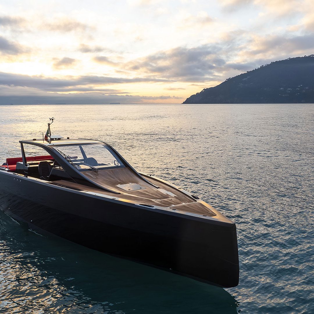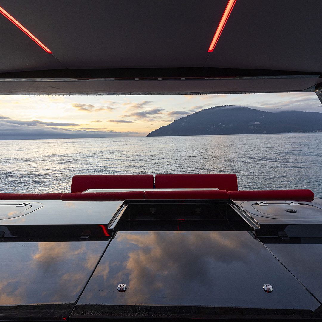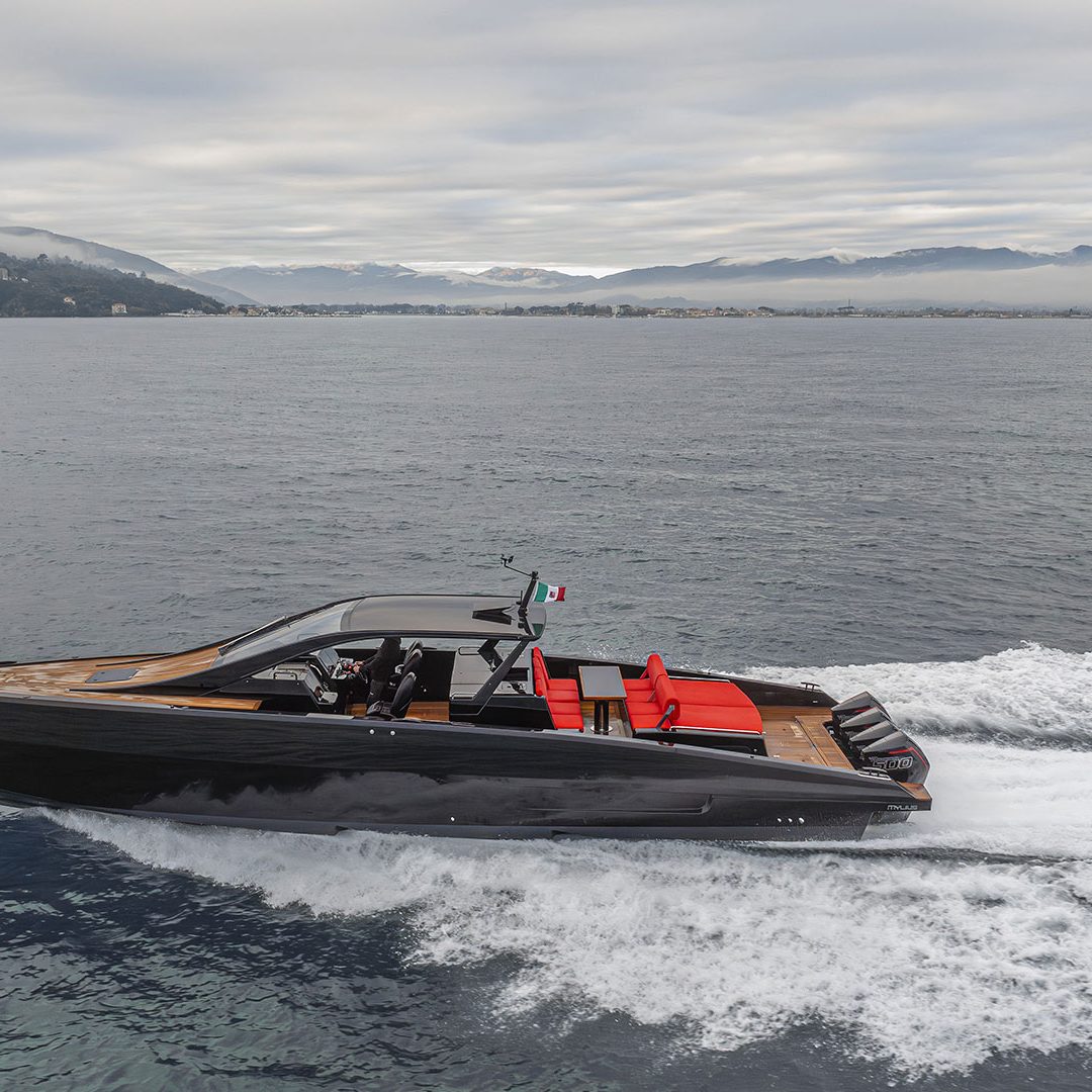Pensato per essere sia un tender che fast cruiser, il Mylius Yachts M47P presenta uno scafo V-shape caratterizzato da una carena con “doppio step” che, grazie alla minor superficie bagnata esposta e alla maggiore portanza, promette un rapido distacco in planata e comfort ad alte velocità. La scelta della motorizzazione fuoribordo permette di ottenere un layout con spazi social sia sopra che sottocoperta: all’esterno, gli ospiti possono scegliere se cenare nel pozzetto attrezzato con tavolo in carbonio, piano cottura e frigoriferi, oppure godersi la navigazione sulle sedute appositamente progettate per le alte velocità che, una volta all’ancora, si trasformano in un prendisole. Su richiesta, il pozzetto può essere chiuso con delle coperture custom, in modo da utilizzare l’imbarcazione anche nei mesi invernali, ed è anche possibile ordinare le fiancate abbattibili che si trasformano in spiaggette per agevolare la discesa in acqua.