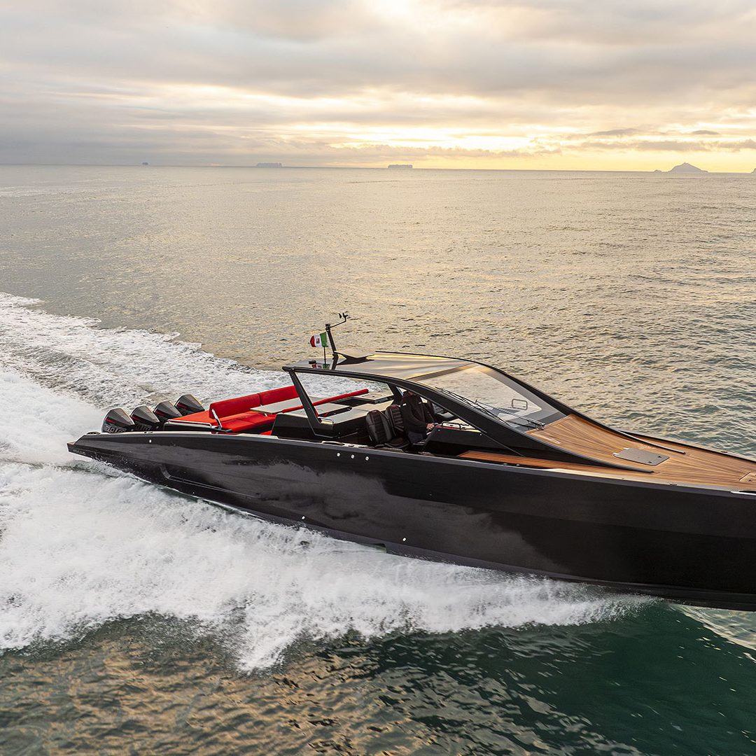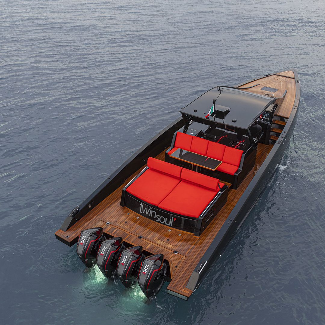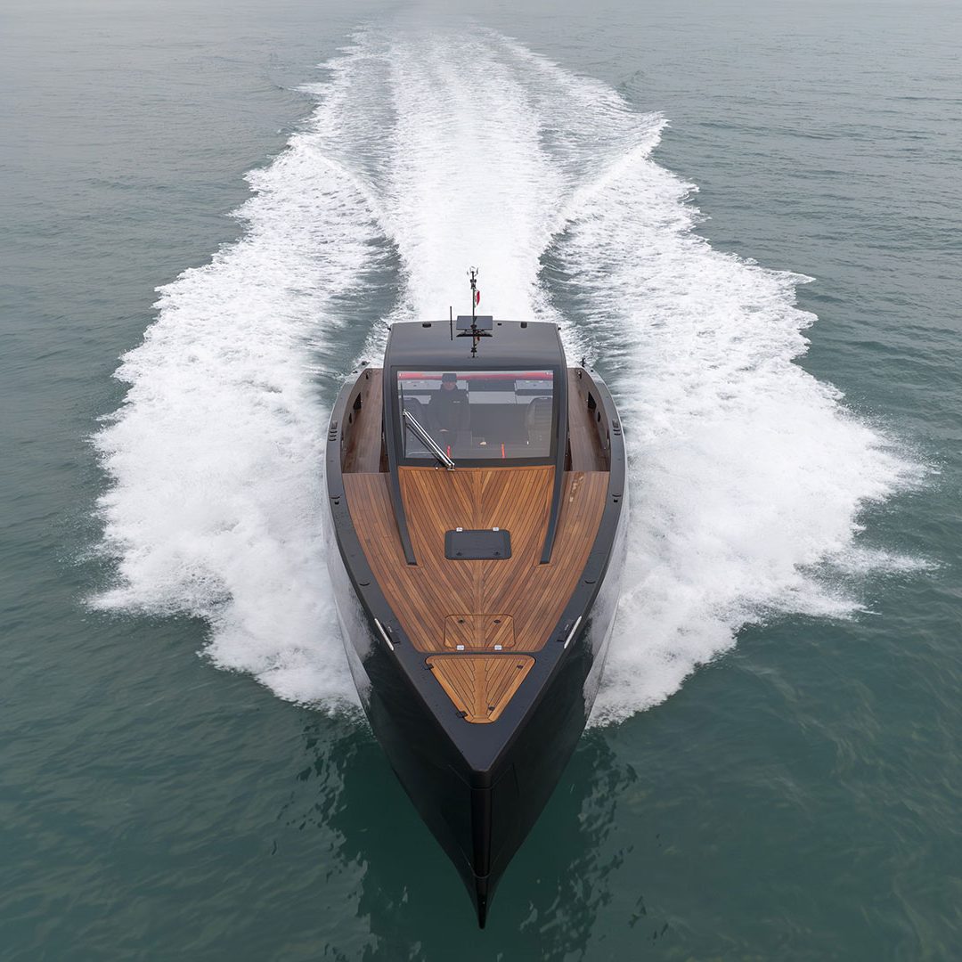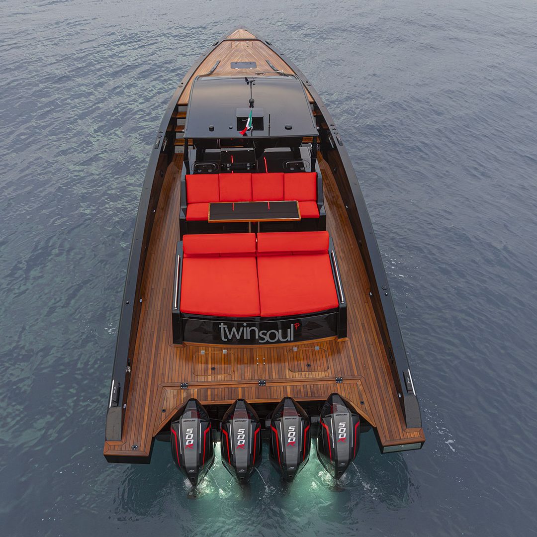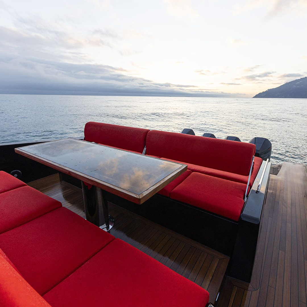 Pensato per essere sia un tender che fast cruiser, il Mylius Yachts M47P presenta uno scafo V-shape caratterizzato da una carena con “doppio step” che, grazie alla minor superficie bagnata esposta e alla maggiore portanza, promette un rapido distacco in planata e comfort ad alte velocità. La scelta della motorizzazione fuoribordo permette di ottenere un layout con spazi social sia sopra che sottocoperta: all’esterno, gli ospiti possono scegliere se cenare nel pozzetto attrezzato con tavolo in carbonio, piano cottura e frigoriferi, oppure godersi la navigazione sulle sedute appositamente progettate per le alte velocità che, una volta all’ancora, si trasformano in un prendisole. Su richiesta, il pozzetto può essere chiuso con delle coperture custom, in modo da utilizzare l’imbarcazione anche nei mesi invernali, ed è anche possibile ordinare le fiancate abbattibili che si trasformano in spiaggette per agevolare la discesa in acqua.
