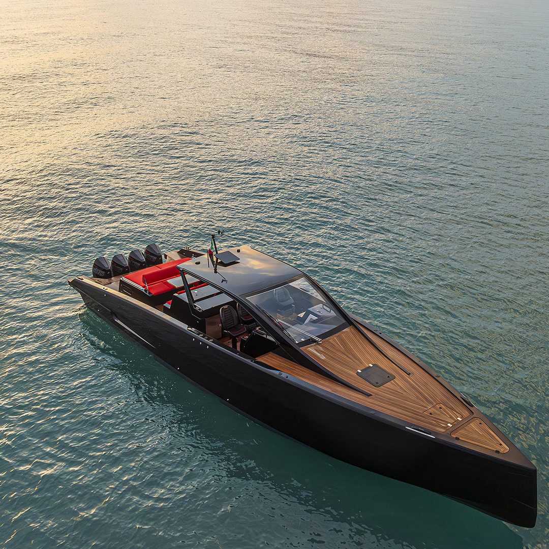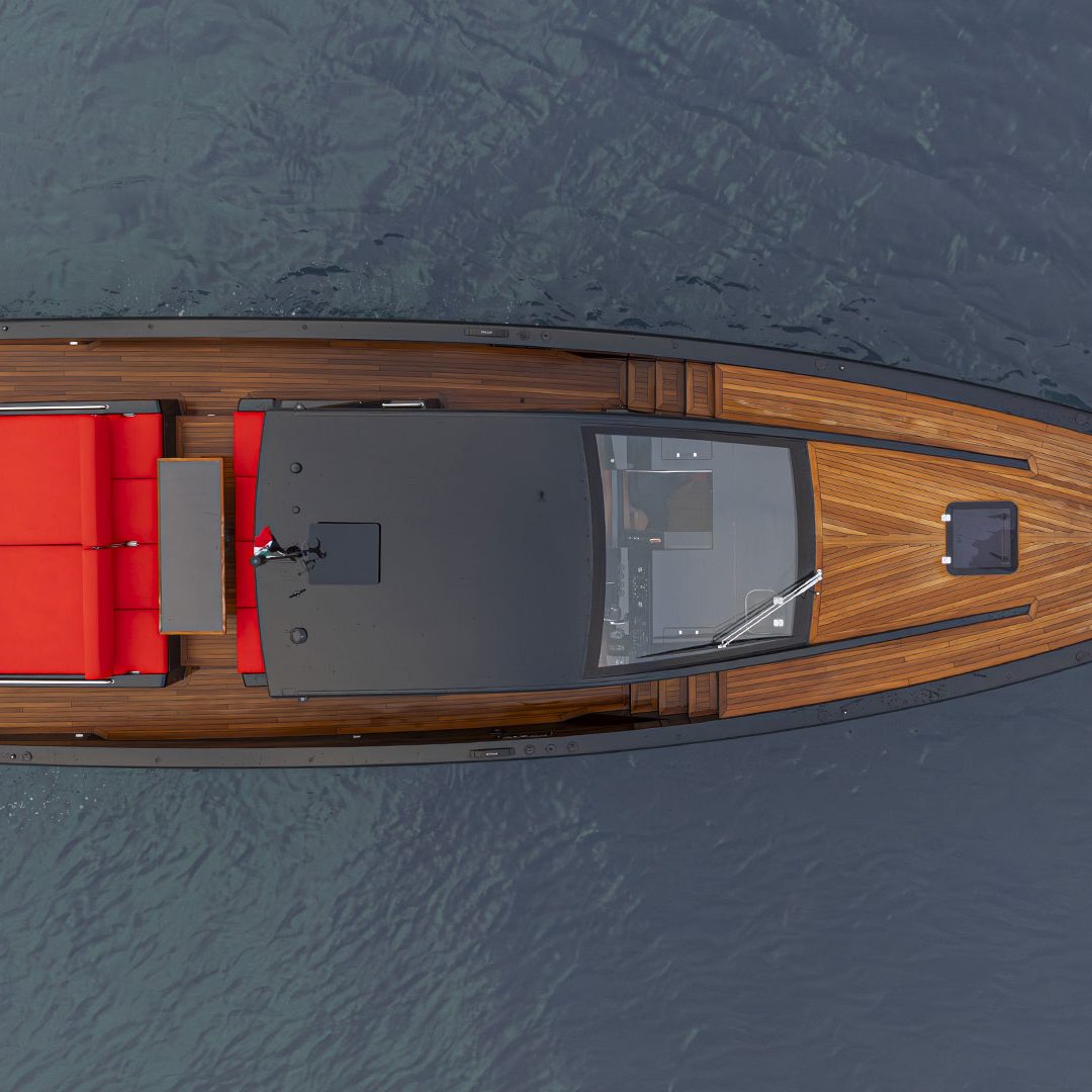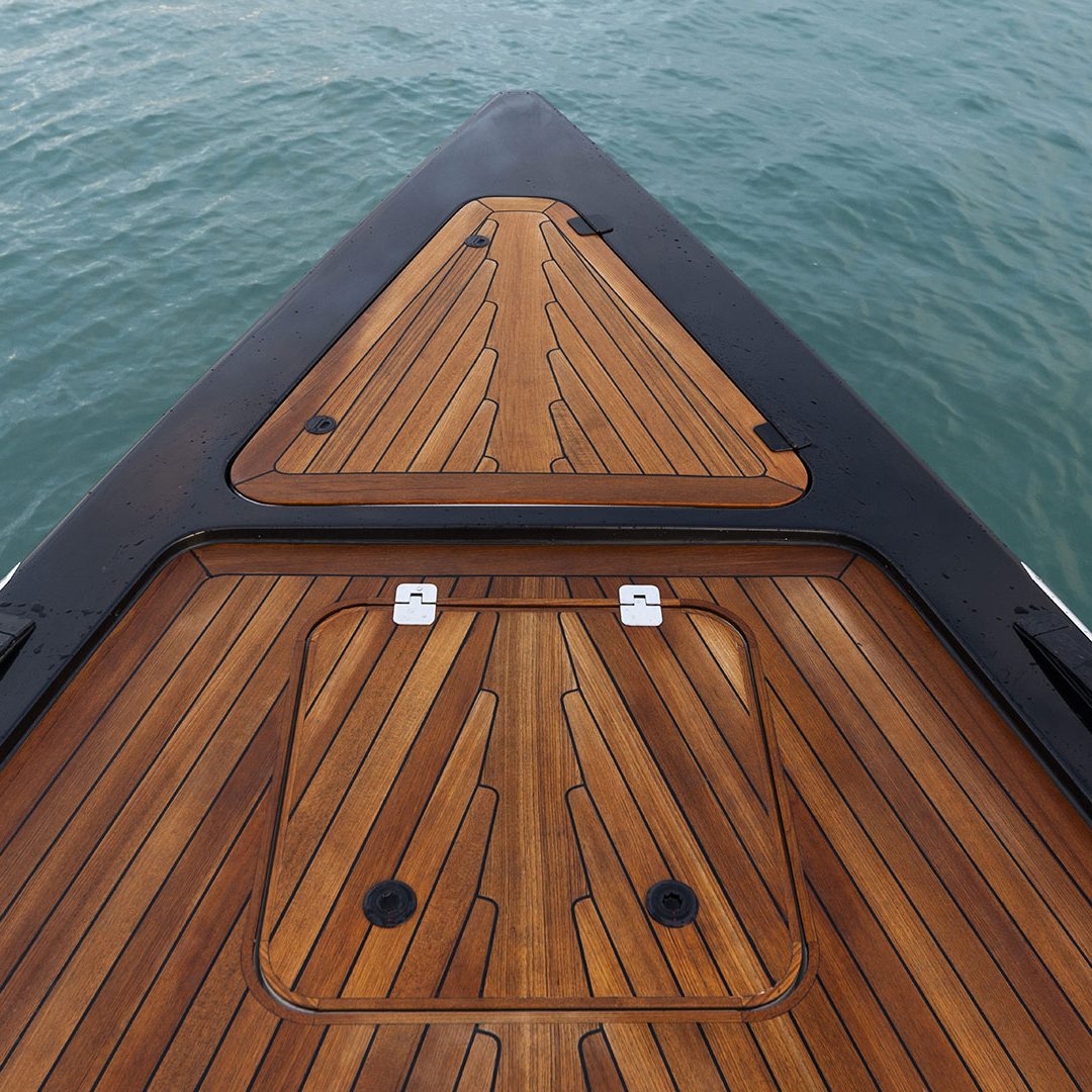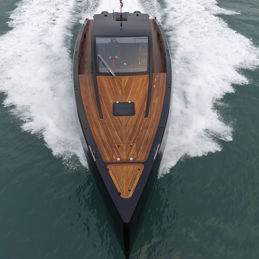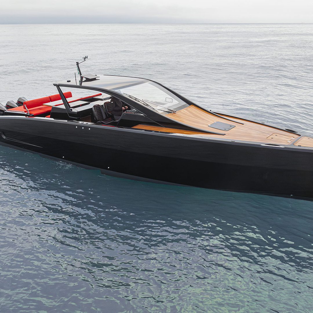 Pensato per essere sia un tender che fast cruiser, il Mylius Yachts M47P presenta uno scafo V-shape caratterizzato da una carena con “doppio step” che, grazie alla minor superficie bagnata esposta e alla maggiore portanza, promette un rapido distacco in planata e comfort ad alte velocità. La scelta della motorizzazione fuoribordo permette di ottenere un layout con spazi social sia sopra che sottocoperta: all’esterno, gli ospiti possono scegliere se cenare nel pozzetto attrezzato con tavolo in carbonio, piano cottura e frigoriferi, oppure godersi la navigazione sulle sedute appositamente progettate per le alte velocità che, una volta all’ancora, si trasformano in un prendisole. Su richiesta, il pozzetto può essere chiuso con delle coperture custom, in modo da utilizzare l’imbarcazione anche nei mesi invernali, ed è anche possibile ordinare le fiancate abbattibili che si trasformano in spiaggette per agevolare la discesa in acqua.