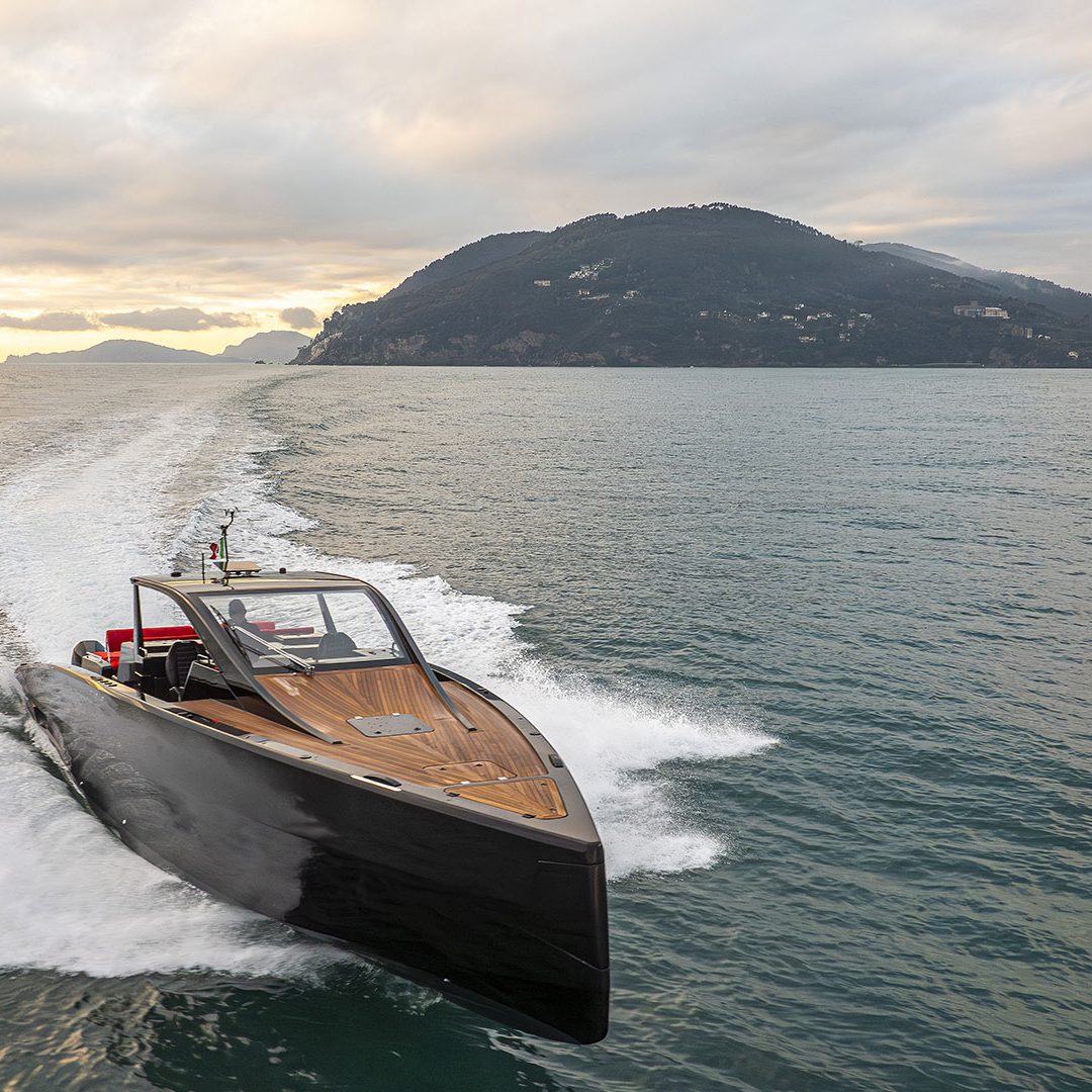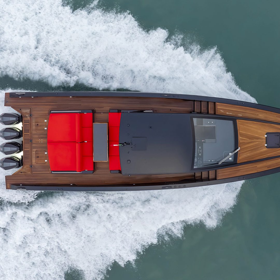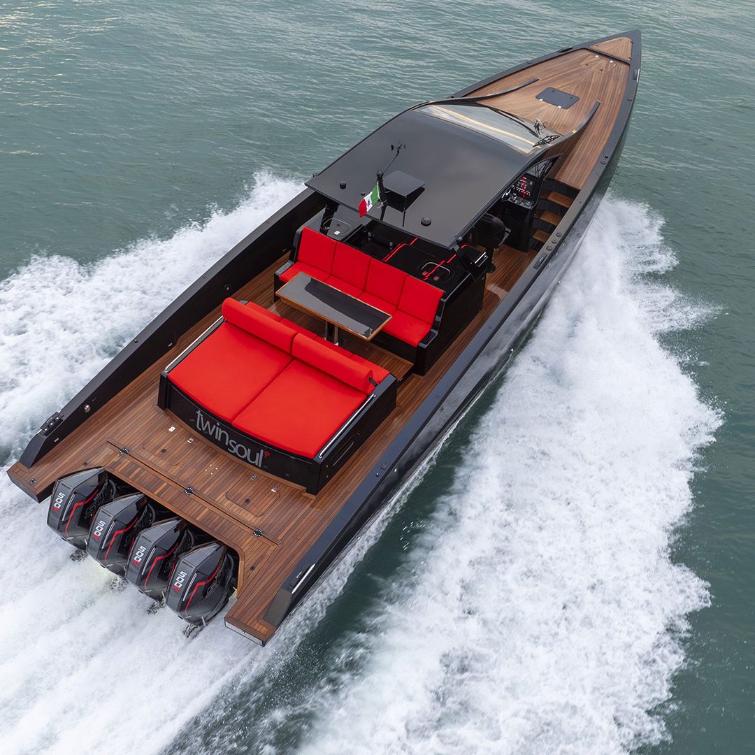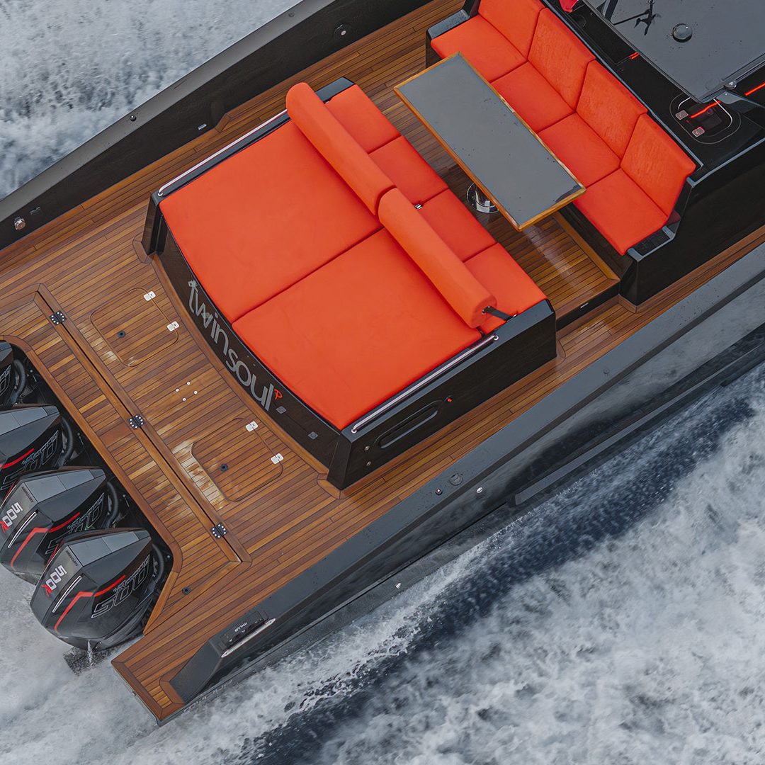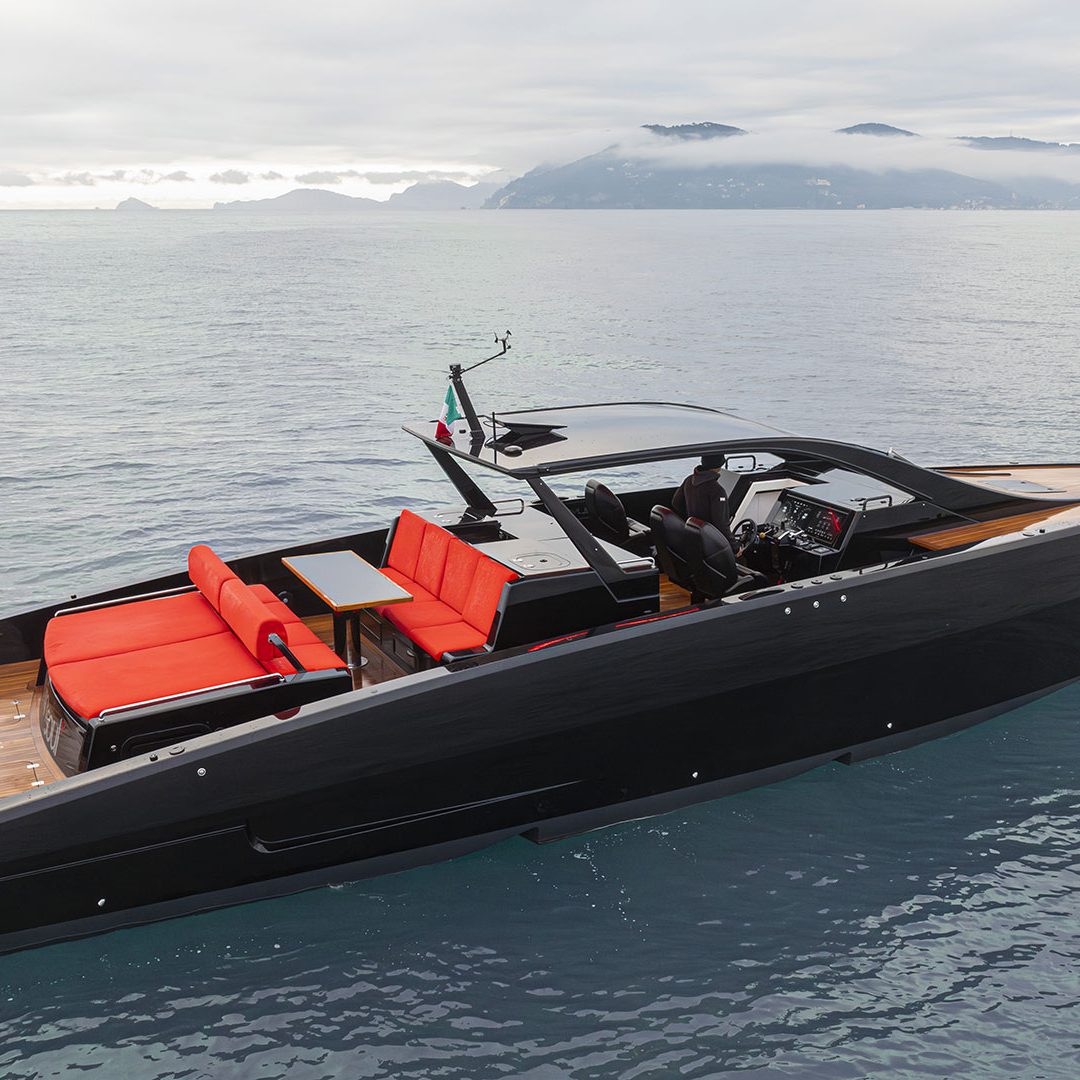 Pensato per essere sia un tender che fast cruiser, il Mylius Yachts M47P presenta uno scafo V-shape caratterizzato da una carena con “doppio step” che, grazie alla minor superficie bagnata esposta e alla maggiore portanza, promette un rapido distacco in planata e comfort ad alte velocità. La scelta della motorizzazione fuoribordo permette di ottenere un layout con spazi social sia sopra che sottocoperta: all’esterno, gli ospiti possono scegliere se cenare nel pozzetto attrezzato con tavolo in carbonio, piano cottura e frigoriferi, oppure godersi la navigazione sulle sedute appositamente progettate per le alte velocità che, una volta all’ancora, si trasformano in un prendisole. Su richiesta, il pozzetto può essere chiuso con delle coperture custom, in modo da utilizzare l’imbarcazione anche nei mesi invernali, ed è anche possibile ordinare le fiancate abbattibili che si trasformano in spiaggette per agevolare la discesa in acqua.