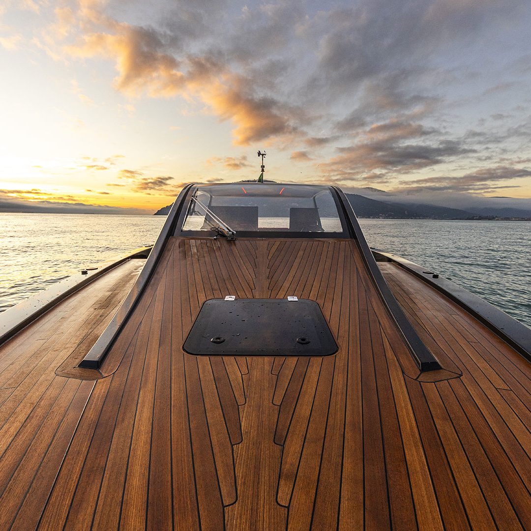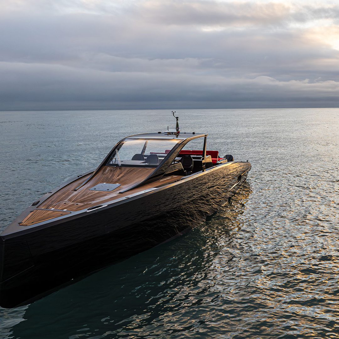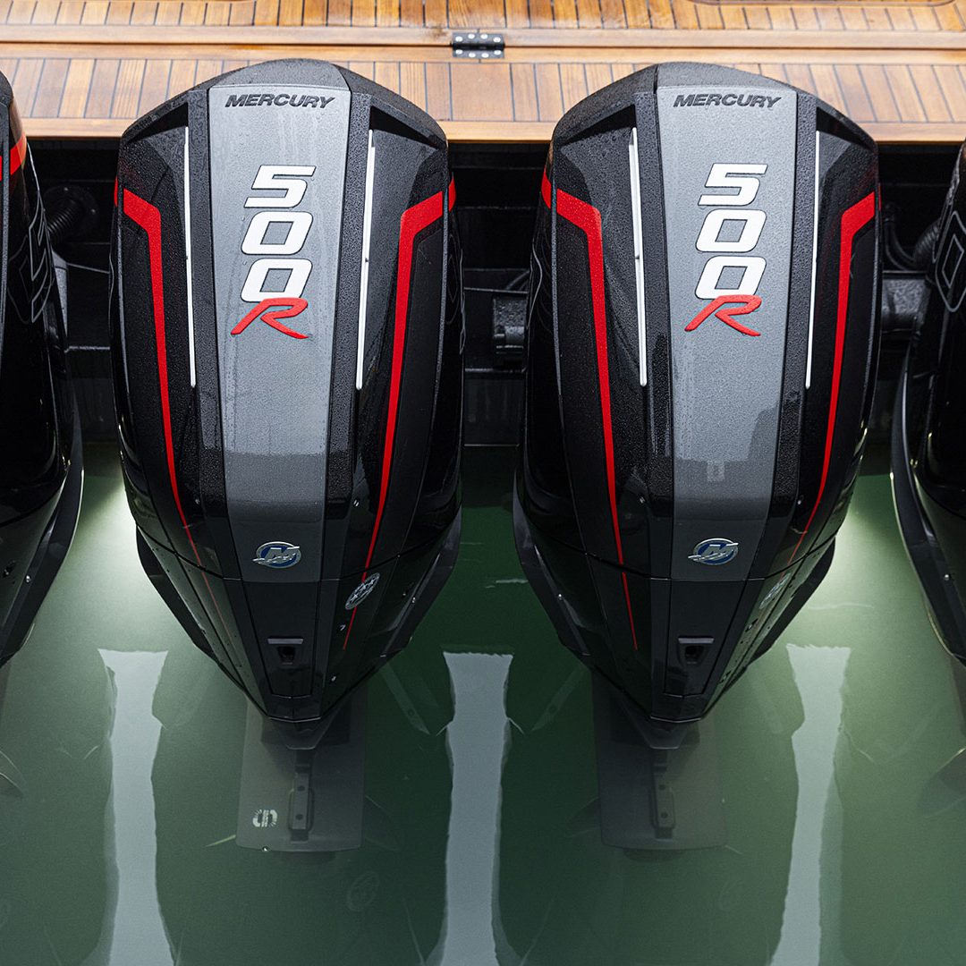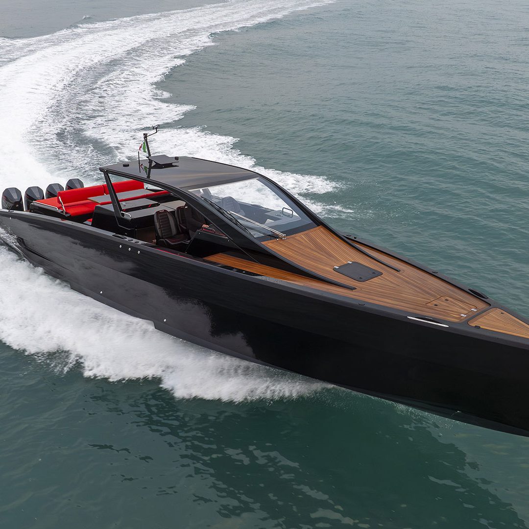 Realizzato in infusione di fibra di vetro con resina epossidica e rinforzi in carbonio, è stato progettato da Alberto Simeone – storico designer del Cantiere – e promette ben 56 nodi di velocità massima grazie ai quattro motori fuoribordo Mercury 500 R. L’M47P è caratterizzato da diversi particolari di grande raffinatezza, come il ponte in teak e l’hard top in carbonio dal design unico che richiama un’onda che nasce dalla coperta.