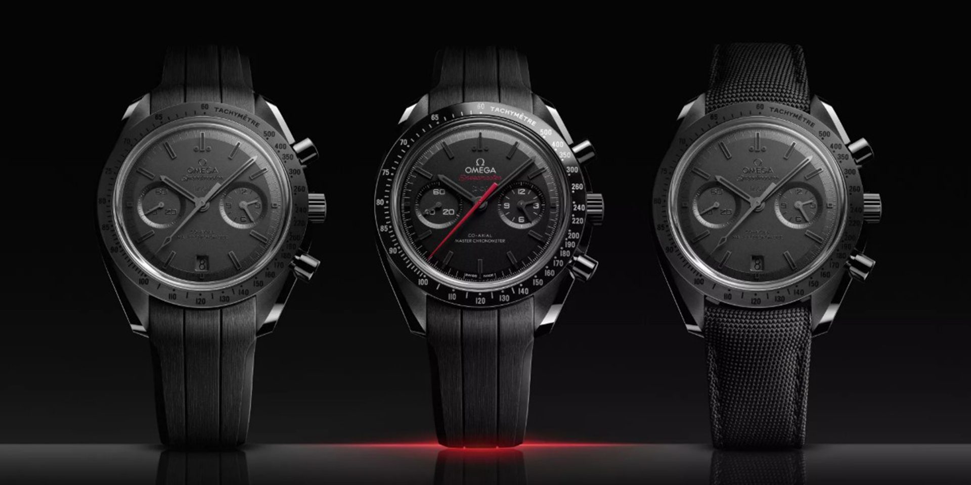 La Maison elvetica presenta Omega Speedmaster Dark and Grey Side of the Moon, una collezione di sette modelli con quattro quadranti e con cinturini in caucciù o nylon di nuova concezione