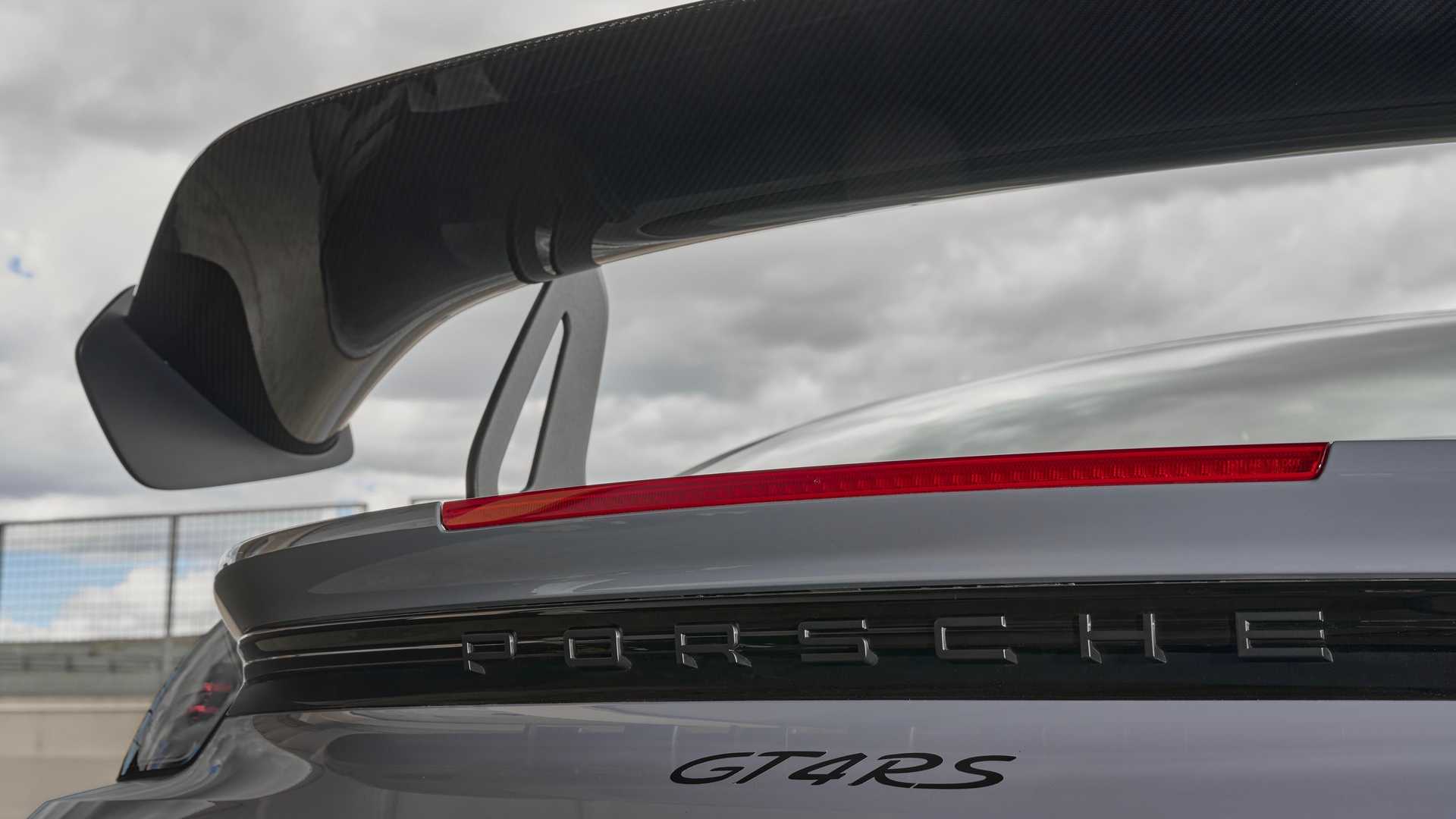 In particolar modo, il profilo alare posteriore deriva dalla Porsche 911 RSR GT ed è stato utilizzato per la prima volta in una Porsche di serie con la 911 GT3. Questo fattore, unitamente a un’altezza da terra inferiore di 30 millimetri rispetto alla 718 Cayman, alle vistose prese d’aria sui passaruota anteriori, al rivestimento del sottoscocca ottimizzato dal punto di vista aerodinamico con diffusore posteriore collegato, al diffusore anteriore a regolazione multipla e al nuovo bordo dello spoiler anteriore dotato di sideblade, consente alla GT4 RS di generare una deportanza superiore di circa il 25% a quella della GT4 nella modalità Performance riservata all’uso in pista.