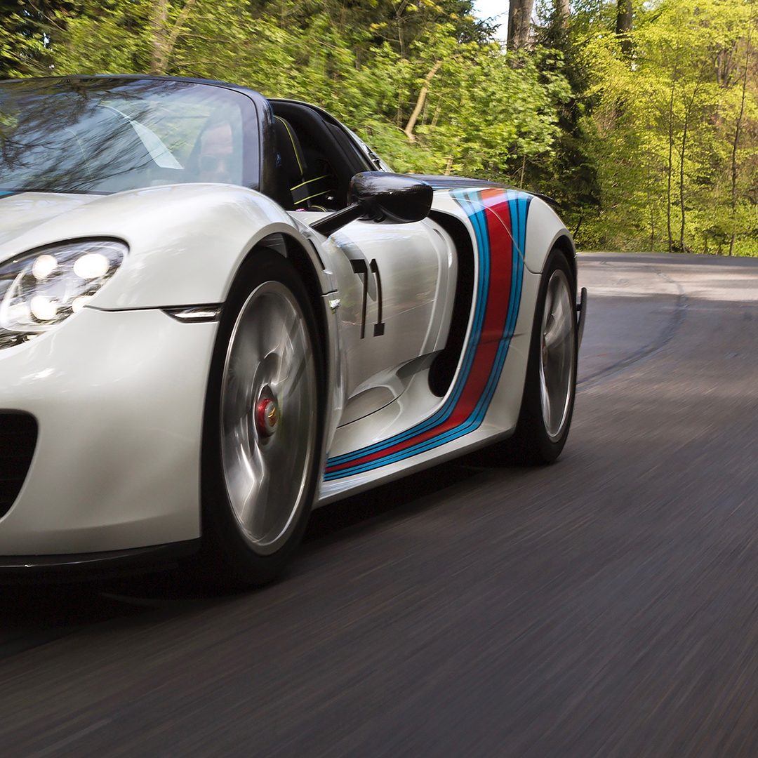 Spesso è quella che passa più ‘sottotono’ delle hypercar che compongono la cosiddetta ‘Holy Trinity’. E questo solo perché le altre due sono la McLaren P1 e la Ferrari LaFerrari. Ma il fatto che sia quella di cui spesso si parli di meno all’interno di questa ‘trilogia’ non la rende certo meno importante. Anzi. La Porsche 918 Spyder è quel che si suol definire ‘un’arma da pista’ a tutti gli effetti. Certo, non ha la bellezza eclatante della Rossa di Maranello, né il carattere (e lo styling) estremo dell’iper-sportiva di Woking, ma ciò nonostante, come direbbe Lucius Fox in Batman Begins: “la belva se la cava bene”. Non ti colpisce dritta al cuore fin da subito come fanno l’italiana e l’inglese, ma una volta che la noti ti pervade l’animo e pian piano ti fa innamorare di lei. Te ne innamori perché in fin dei conti Porsche è Porsche e perché, a discapito del suo stile più ‘sobrio’ rispetto alle due rivali, nasconde tutta l’anima brutale che ci si attenderebbe da un’hypercar made in Zuffenhausen. E a parlare per lei è un tempo di 6 minuti e 57 secondi (ottenuto con pacchetto Weissach) sulla Nordschleife del Nürburgring (battendo di ben 14 secondi il record precedente), il che la dice lunga sulle incredibili reali capacità di questa incredibile ed estrema supersportiva ibrida. Ma facciamo un salto indietro. Tra le auto della ‘Holy Trinity’ fu l’unica a non debuttare in società al Salone dell’Automobile di Ginevra del 2013 (dove venne però anticipata da un concept tre anni prima). La 918 Spyder venne infatti presentata – sempre quell’anno – all’IAA di Francoforte. Il suo (ambizioso) obiettivo? Essere tanto performante quanto fruibile e sostenibile: consumi ed emissioni la certificarono infatti in classe A+. Addirittura, con il pacchetto Weissach, i consumi totali nel NEDC erano pari a 3.0 l/100 km (3.1 l/100 km senza il pacchetto Weissach) a fronte di emissioni di CO₂ di 70 g/km (72 g/km senza il pacchetto Weissach). Il livello di consumo energetico è stato determinato in 12,7 kWh/100 km durante il ciclo di approvazione. Perché precisare tutto questo? Per ben comprendere quanto Porsche avesse messo l’usabilità della vettura al centro del progetto 918. Sì, perché se un’hypercar come questa è scontato che sia incredibilmente performante, non lo è altrettanto il fatto che sia comodamente utilizzabile. Questa la vera sfida che Stoccarda voleva superare: disporre di una trazione ibrida mai vista prima su questo tipo di vettura. E ovviamente ci riuscì.