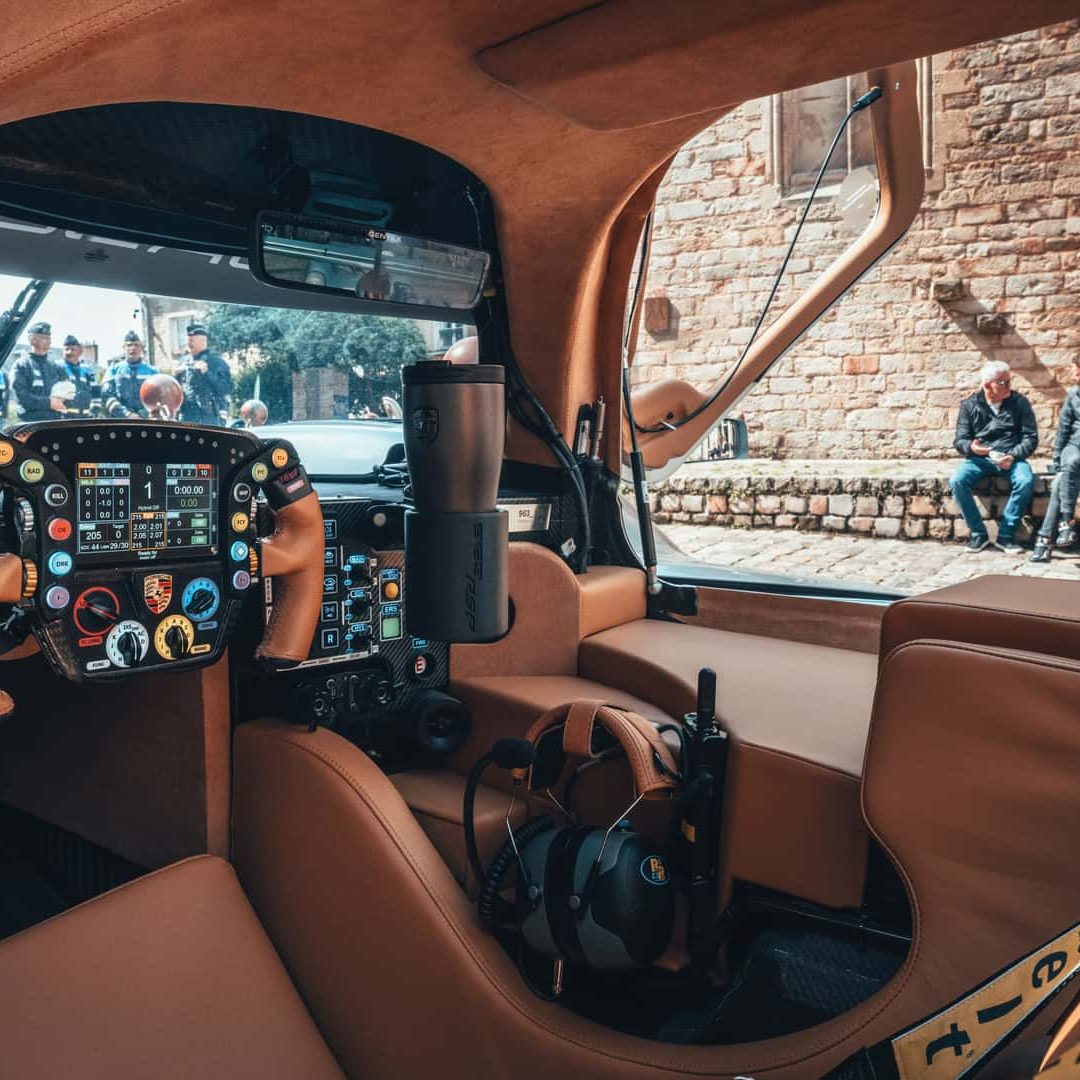 Un sogno che nasce dalla collaborazione con Porsche Penske Motorsport per il suo leader (RSP sta appunto per Roger Searle Penske) grazie ad un telaio realizzato ad hoc e assemblata nello stabilimento di Porsche Cars North America ad Atlanta, in Georgia. Una vettura essenziale, con pannelli in fibra di carbonio rivestiti in maniera semplice della colorazione che contraddistingue l’auto, ovvero il Martini Silver della Count Rossi 917. Gli interni sono in Alcantara e mettono alla vista lo stesso marrone chiaro della 917 e a demarcare il suo uso stradale troviamo un volante rivestito in pelle e perfino un portabicchieri amovibile stampato in 3D.