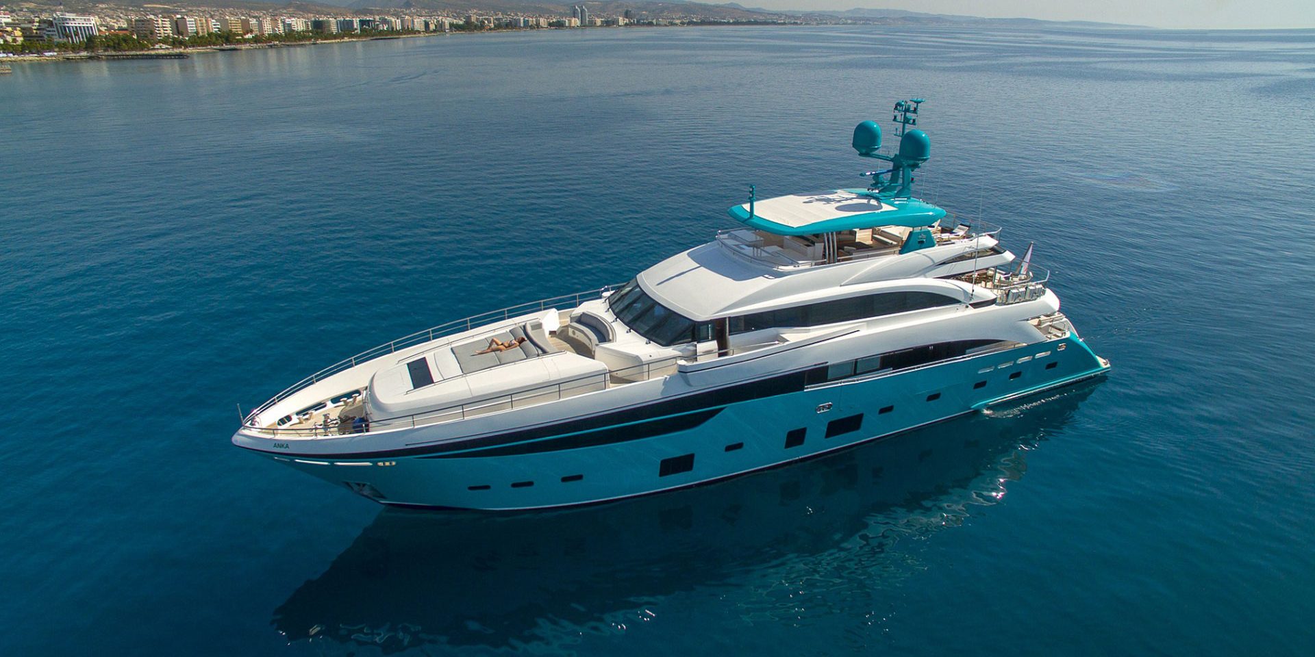 Lanciato nel 2015 e lungo 40 metri, il Princess Yachts Anka è un megayacht la cui progettazione è stata affidata al team interno del costruttore inglese e che si caratterizza per via di una struttura esterna con colorazione bicromatica in bianco e verde acqua.