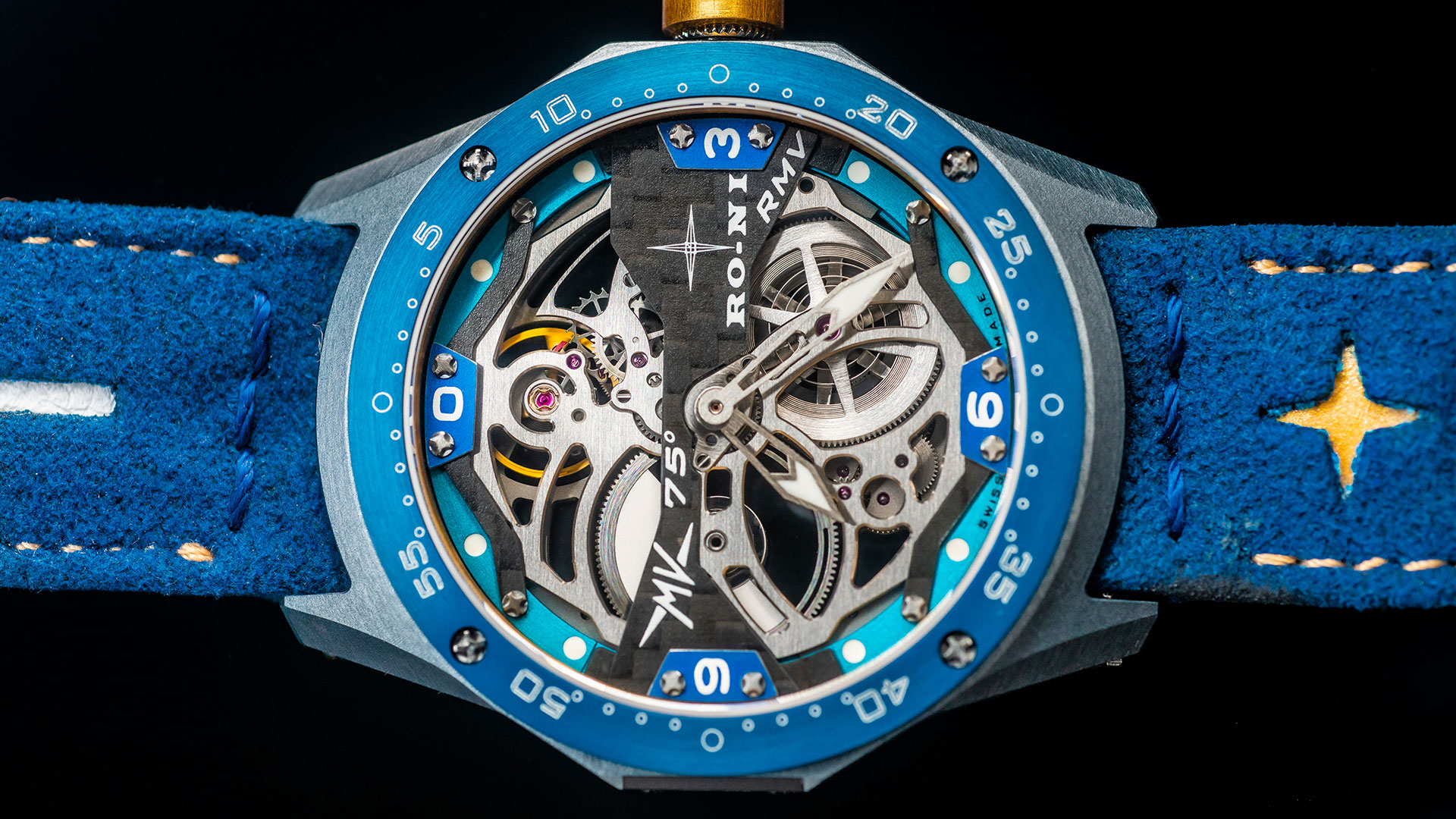 Automatico e interamente costruito a mano, il RO-NI RMV sarà prodotto in una serie limitata di 75 esemplari. La storia di RO-NI è legata al mondo delle corse e dei motori e questa collaborazione con MV Agusta costituisce un ritorno alle origini per il marchio dell’Engadina. I materiali utilizzati per l’RMV sono gli stessi che MV Agusta impiega per la creazione delle proprie moto: titanio, lega di alluminio 7075, acciaio, e fibra di carbonio, ma anche pelle, Alcantara e zaffiro.