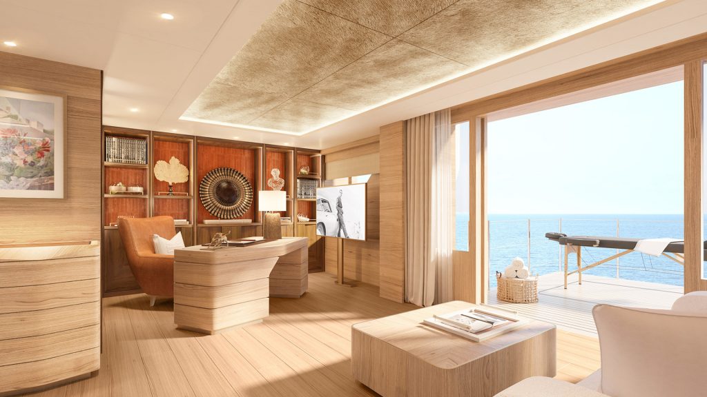 Gli ospiti trovano spazio in sei suite di lusso in grado di accogliere fino a 12 persone. A prua del ponte principale si trova la suite armatoriale a tutto baglio, progettata come uno spazio privato in cui ritirarsi godendosi la vista sull’oceano e la brezza con una terrazza balcone pieghevole. Una cabina adiacente sul ponte principale può essere utilizzata come VIP, suite per bambini, ufficio o palestra. Le restanti quattro suite per gli ospiti del ponte inferiore misurano 200 piedi quadrati ciascuna. L’Amels 60 Project Snow dovrebbe essere consegnato ai suoi nuovi proprietari nell’ottobre 2023.