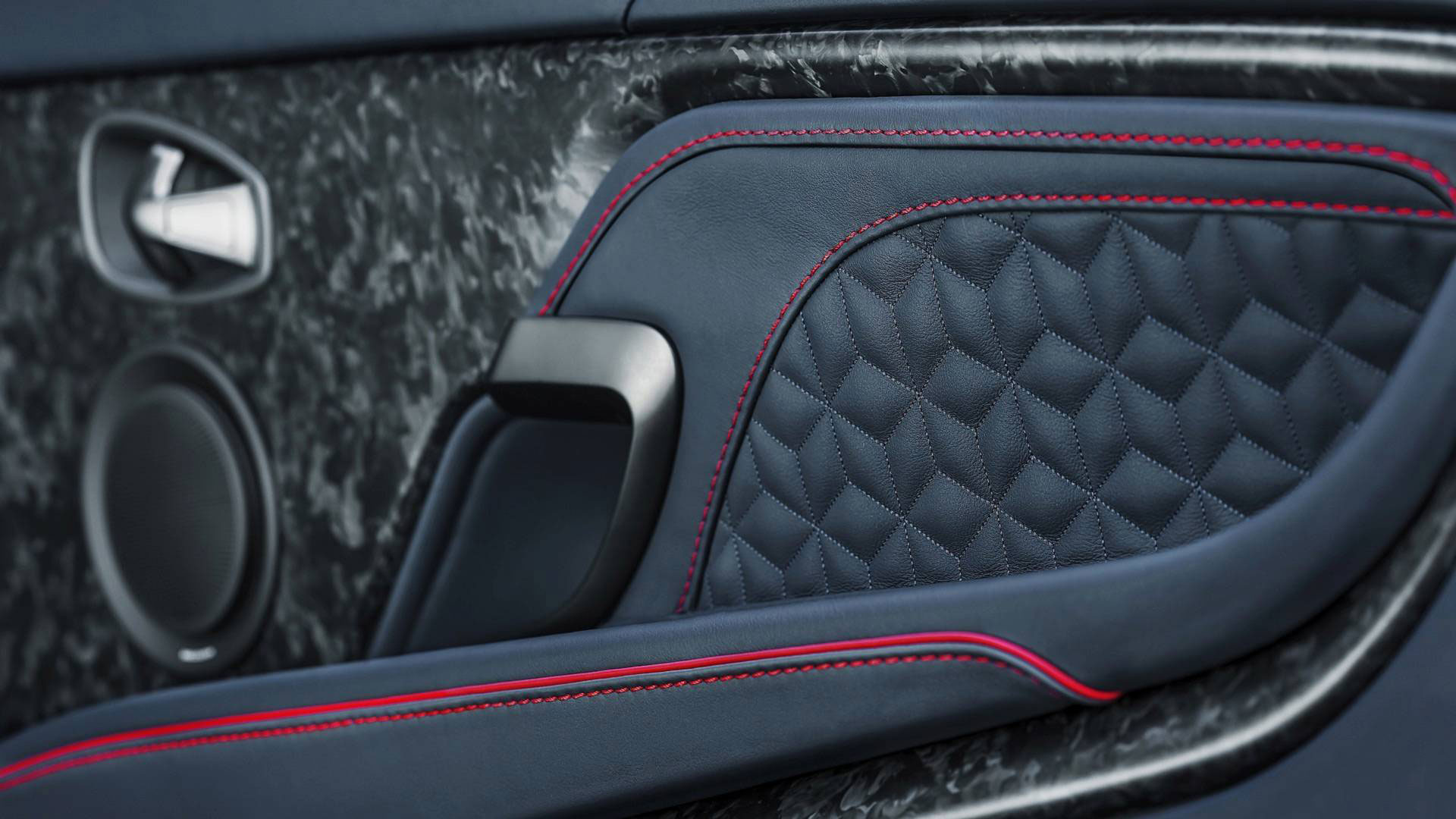 Ricchissima, come da tradizione del marchio inglese, la dotazione: aperta la portiera (con sistema keyless) dell’Aston Martin DBS Superleggera è infatti possibile notare un abitacolo dominato da rivestimenti in pelle pregiata, un sistema di infotainment con sistema di navigazione satellitare integrato (con streaming audio e telefonico, Bluetooth e collegamento per iPod e iPhone, nonché con funzione di riproduzione USB) e collegato ad una telecamera 360° con sistema di assistenza al parcheggio.