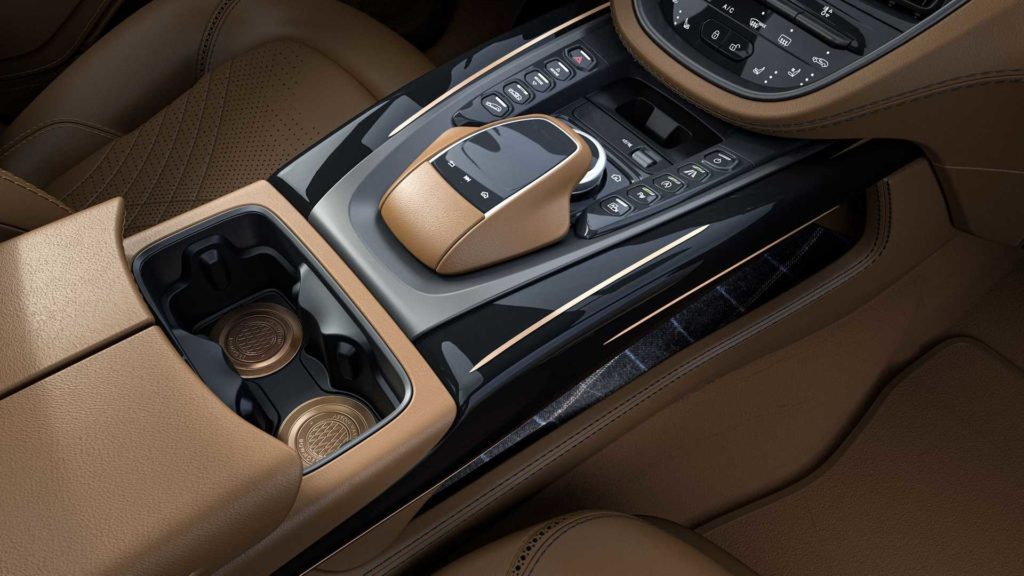 I clienti possono scegliere gli interni Obsidian Monotone o Copper Tan Metallic / Obsidian Duotone. Entrambe le scelte sono accentuate da inserti in Bowmore Tweed, che riflettono l’ascendenza da Islay dell’azienda. Creato dal rinomato Islay Woollen Mill, fondato nel 1883, il design incorpora rame e blu ispirati al terroir e ai laghi dell’isola. Inoltre, l’interno contiene molti dettagli di design Q by Aston Martin, come i porta bicchieri in rame lucido realizzati in rame riciclato dall’originale Bowmore. L’intarsio del rivestimento della console centrale, nero lucido, presenta dettagli in lamina di rame posati a mano. Ogni auto viene fornita con una selezione di accessori Q by Aston Martin appositamente progettati, come la coperta da picnic in tweed Bowmore e un borsone in pelle.
