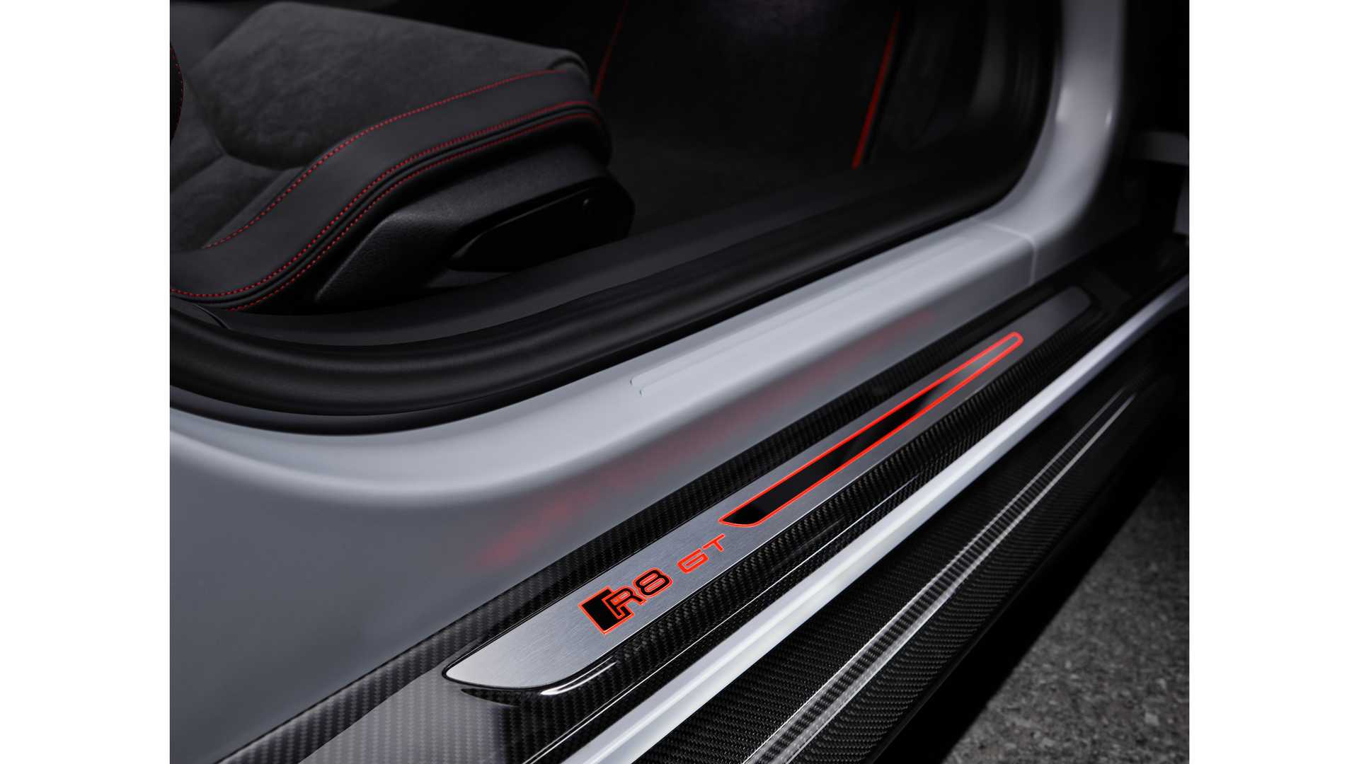 In termini visivi, l’Audi R8 V10 GT RWD si fa riconoscere per il badge dei Quattro Anelli oscurato, per il lettering “R8 GT” apposto su numerosi elementi della vettura, per un body-kit aerodinamico in CFRP volto a massimizzare le prestazioni di carico verticale e per un corpo-vettura in grigio Suzuka opaco. In alternativa, gli acquirenti possono optare per i colori metallizzati Daytona Grey o Tango Red.