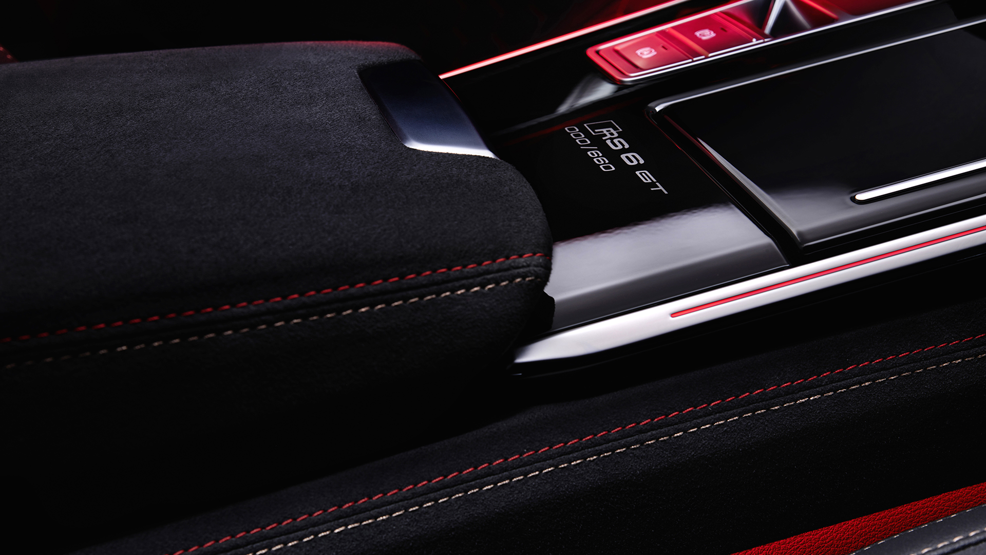 Audi RS 6 Avant GT si avvale di serie del pacchetto design RS plus. Gli interni, dal look nero dominante, sono impreziositi da accenni di colore nella combinazione rosso e rame, ad esempio per le cuciture in corrispondenza della corona del volante, dei fianchetti della console, dei braccioli e dei tappetini. Questi ultimi corredati della scritta “RS 6 GT”. Analoga combinazione cromatica per i rivestimenti in pelle e microfibra Dinamica dei sedili a guscio RS, forti della struttura in carbonio e del badge “RS 6 GT” alla base dei poggiatesta. Nello specifico, le impunture a nido d’ape nella sezione centrale delle sedute sono in rosso Express, mentre quelle lungo i fianchetti sono color rame. Braccioli, plancia, console e pannelli porta sono rivestiti in microfibra Dinamica nera, mentre gli inserti in abitacolo sono disponibili in nero lucido oppure, in opzione, in carbonio twill con fibre dal look intrecciato, mentre le cinture di sicurezza sono in rosso cremisi. La console, infine, riporta il numero progressivo della vettura, dato che Audi RS 6 Avant GT è realizzata in serie limitata a 660 esemplari.