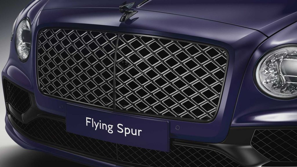 Anche la griglia inferiore, le prese d’aria nella fascia anteriore, le calotte degli specchietti, le cornici dei finestrini, il rivestimento delle portiere nella parte inferiore e le cornici dei fari, sono a loro volta neri. Tuttavia, il trattamento si applica solo all’esterno del Flying Spur Mulliner.