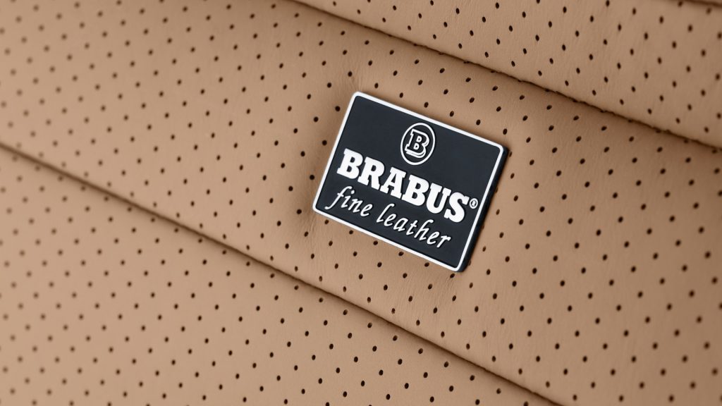 Aperta la portiera della Brabus 850 XL a farsi notare è un ambiente interno altamente personalizzabile, che propone tra le scelte la colorazione marrone visibile in foto con rivestimenti in pelle commisti ad inserti in legno e in fibra di carbonio, oltre a particolari in alluminio.