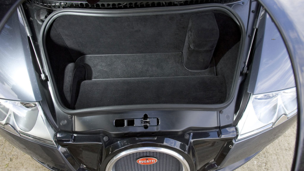 Un’auto così speciale non poteva che avere degli pneumatici altrettanto speciali e, per tale ragione, Bugatti avviò una collaborazione con Michelin per quella che fu ancora una volta un’impresa senza precedenti. Questi pneumatici, assemblati a mano, consentono all’auto di raggiungere la velocità di punta senza la necessità di dover montare specifici pneumatici da competizione. In fase di sviluppo, per simulare le alte velocità toccate dalla Veyron, venne utilizzato un macchinario usato per simulare lo stress a cui erano sottoposte le ruote dei carrelli degli aerei, un sistema all’epoca non ancora utilizzato nel settore automotive. I dischi dei freni sono in carbonio, ceramica e titanio, lavorando a temperature che superano i 980°. Pur essendo molto potenti, non avrebbero potuto garantire alla Veyron di frenare in sicurezza. Serviva infatti qualcosa a livello strutturale, che funzionasse con lo stesso principio dei deflettori posizionati sulle ali di un aereo. Questo compito sarebbe stato assolto dall’alettone posteriore che, esteso, garantiva quasi un terzo della potenza frenante. Volete un dato shock? La forza frenante complessiva è quasi il doppio della forza di gravità. La Veyron impiega infatti meno di 10 secondi per passare dalla velocità di 407 a 0 km/h.
