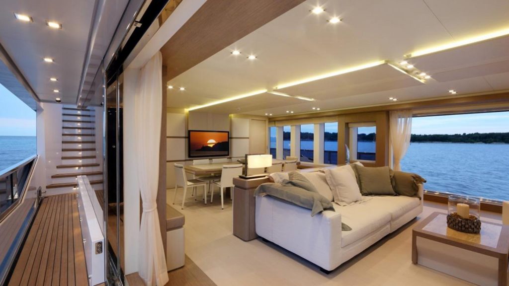 Lungo 40 metri, il Columbus Yacht 40M Sport Hybrid sfrutta un sistema di propulsione ibrido e mette a disposizione degli ospiti tre ponti per lo svolgimento delle attività all’aria aperta