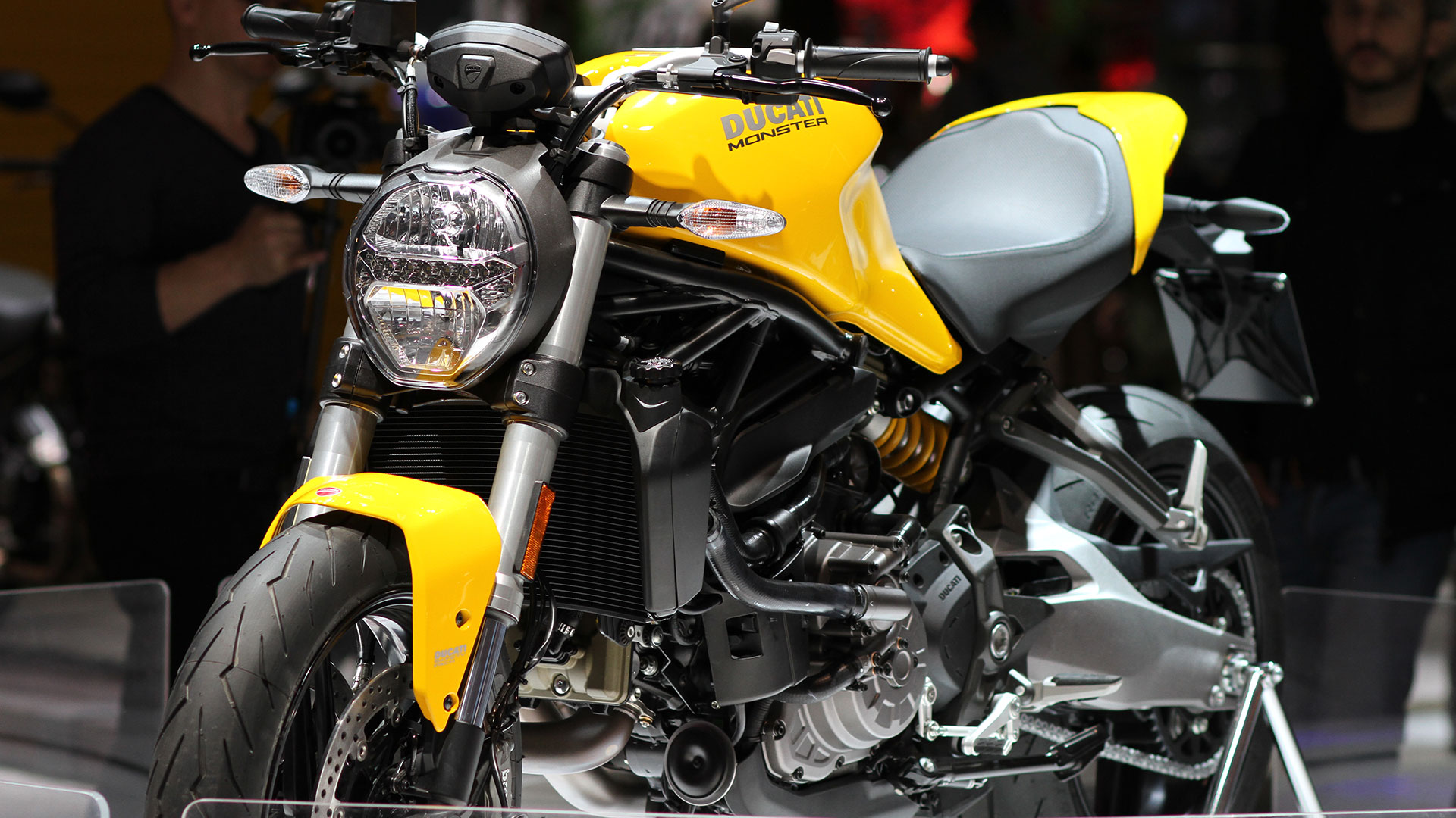 Altra grande novità presente sullo stand è la Ducati Monster 821 M.Y. 2018, che in occasione del 25ennale del modello, riporta in auge cromatismi e grafiche proprie della prima M900. Cuore e anima della Ducati Monster 821 M.Y. 2018 è un motore bicilindrico Testastretta raffreddato a liquido da 109 CV di potenza (a 9.250 giri/minuto) e 86 Nm di coppia (a 7.750 giri/minuto) al cui fianco lavorano: Ducati Safety Pack, ABS Bosch, Ducati Traction Control e tre Riding Mode che agiscono su ABS, DTC e Power Mode (che gestisce potenza massima e tipologia di erogazione).