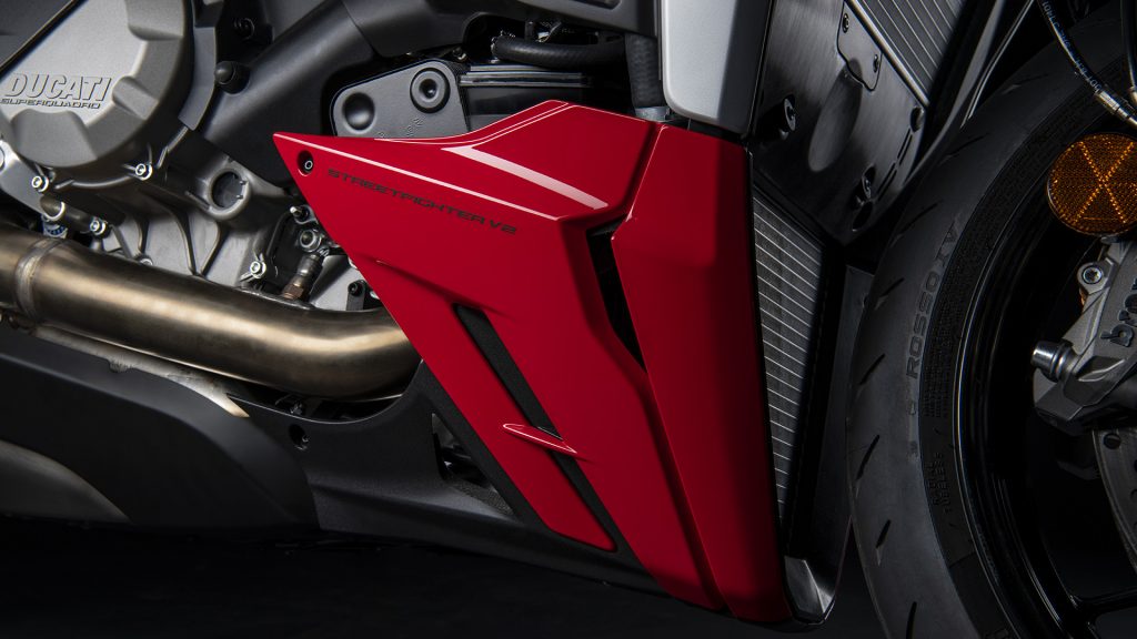 Lo Streetfighter V2 è dotato di tre Riding Mode (Sport, Road, Wet) con tarature dei controlli dedicate. L’equipaggiamento elettronico può essere arricchito dagli accessori contenuti nel catalogo Ducati Performance: Ducati Data Analyser (DDA + GPS) e Ducati Multimedia System. La moto è dotata di fari full-LED con DRL anteriore e di un dashboard TFT da 4,3” dall’interfaccia intuitiva che richiama il family-feeling dello Streetfighter V4. Sarà disponibile nelle concessionarie della rete Ducati a partire dal mese di dicembre 2021 nella colorazione Rosso Ducati con cerchi neri. All’interno del catalogo Ducati Performance sono presenti diversi accessori pensati per esaltare il look e le prestazioni. Tra questi spiccano le ali, pensate da Ducati per garantire prestazioni ancora più elevate nell’uso in pista.