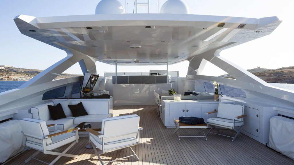 Elementi in legno riscaldati, piscina, sala cinema e un solarium in grado di accogliere tutti gli ospiti presenti a bordo completano la caratterizzazione stilistica dell’Heesen Yachts Amore Mio, che aggiunge a quanto elencato anche un flybridge con vista panoramica, una suite armatoriale dotata di bagno e di cabina armadio e 3 stabilizzatori giroscopici.