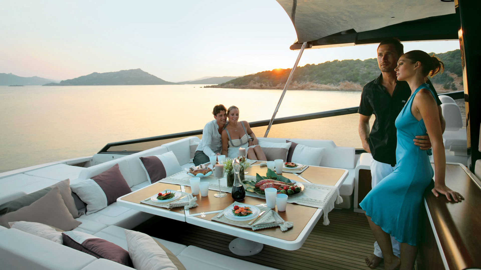Itama 75 (speedboat da 23.54 metri di lunghezza e 5.92 metri di larghezza) è una barca che strizza l’occhio ai cultori dell’open. Il ponte principale si distingue sia per dimensioni che per dotazioni ed è diviso in 4 zone: un prendisole di poppa che sovrasta l’hangar con il tender o la moto d’acqua; una zona living con grandi divani in tessuto impermeabile che scorrono per unirsi a C e ospitare fino a 12 persone intorno al tavolo in teak; al centro la plancia di comando con seduta copilota a sinistra e, sotto il parabrezza, una grande chaise longue, per godere in tutto relax della navigazione dalla posizione più comoda.