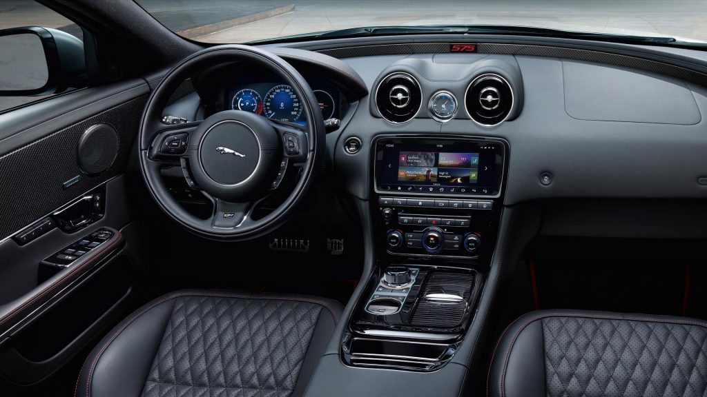 Disponibile sia in versione a passo lungo che standard, la Jaguar XJR575 mette infatti in mostra un kit aerodinamico dedicato e cerchi in lega da 20 pollici di diametro neri con pinze rosse alle spalle, oltre ad un ambiente interno connotato da impunture a vista e da loghi dedicati (la variante a passo lungo mette inoltre a disposizione degli occupanti delle file posteriori due sedili singoli dotati di schienale inclinabile, oltre che di funzioni di memoria e di massaggio, quest’ultima a tre livelli).