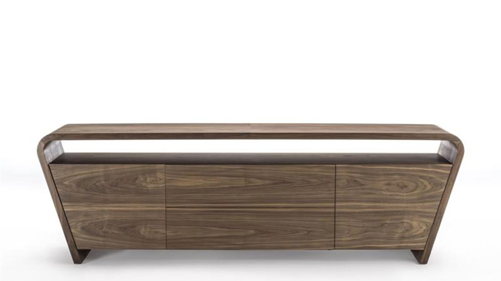 Credenza in legno massello e multistrato composta da due ante laterali e cassetti centrali, si contraddistingue per linee sinuose ed arrotondate che riprendono la forma della scrivania Klip. Posto sotto il top si trova un pratico e funzionale vano a giorno. Finitura: a base di olio/cera naturale di origine vegetale con estratti di pino.