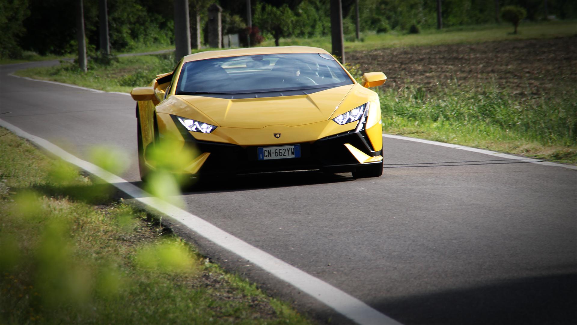 Sant’Agata Bolognese – Il sole che si erge nelle campagne bolognesi. L’aria un po’ frizzantina di una primavera che stenta ad arrivare e tanta, tantissima emozione in corpo. E lei. Gialla. Che ci aspetta dinnanzi all’ingresso della sede storica della Casa del Toro. Stiamo parlando della Lamborghini Huracán Tecnica, ovvero l’ultima evoluzione della V10 da 5.2 litri del famosissimo costruttore di supercar italiano (se si esclude la STJ realizzata in tiratura limitatissima a 5 unità) e che segna il canto del cigno di questo modello prima dell’unveiling della sua erede a 10 anni esatti dalla sua presentazione al Salone di Ginevra. Un’emozione grande, grandissima. Di quelle che si provano solo nel ritirare vetture come queste in degli spazi che raccontano una storia significativa come solo quelle italiane sanno essere.