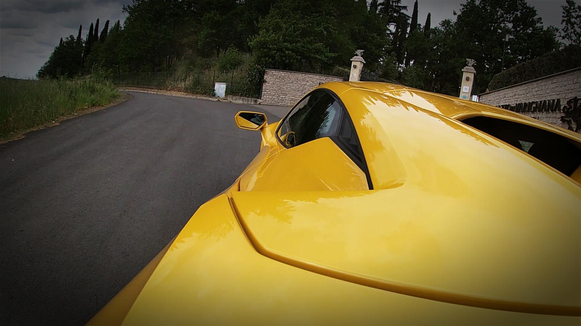 Un mito. Un sogno. Un’icona che per chi vi scrive rappresenta la fiamma che accese quella grande passione che lo ha portato oggi qui ad essere dove è ora. La prima immagine. Il primo ricordo che personalmente ho di un’automobile è proprio quello di una Lambo. Una Countach. Nera. Su due pagine in apertura di un servizio giornalistico di una nota rivista automobilistica italiana in un numero di fine anni ’80. Ero appena un bambino, ma quel design realizzato seguendo una linea unica, così anticonvenzionale, così estremo e diverso, mi folgorò immediatamente. Un’emozione intensa, che a distanza di oltre 3 decenni va oggi a concretizzarsi nella presa in consegna di una 10 cilindri aspirata del Toro. La notiamo brillare sotto al sole da oltre il vetro mentre compiliamo i documenti per la presa in consegna. E l’emozione cresce forte in noi mentre chi di dovere a Sant’Agata Bolognese ci conduce verso di lei consegnandoci le chiavi. Una veloce ma dettagliata spiegazione della vettura. E poi. E poi quella leva della pulsantiera di derivazione aeronautica che si solleva. Ed il pulsante start che la porta alla vita. Come il tocco di Dio nei confronti di Adamo. Come a segnare il passaggio da ‘oggetto’ a qualcosa di vivo, con un cuore, con un’anima. Ed il 10 cilindri a V di grande cubatura che squarcia l’aria con il suo ruggito. Roco, cupo, intenso. Basta quella ‘vibrazione’ al minimo per scuotere un animo. Per ricordarci che alla fine, è per emozioni come queste che viviamo. E sono emozioni come questa che ci fanno sentire vivi. Una giornata, dicevamo, di quelle che non si dimenticano nella vita. Di quelle che si racconteranno a chi verrà come qualcosa di indelebile affinché questa emozione viva in loro come in noi e come in voi che ci leggete. Mettiamo la prima cliccando verso di noi con il paddle di destra mentre il plurifrazionato italiano inizia a spingere forte alle nostre spalle. Dinnanzi a noi solo la strada. I rettilinei, le curve, i tornanti. E una location da sogno nel navigatore, ovvero Palazzo di Varignana, dove andremo a goderci il tempo che abbiamo da trascorrere in compagnia di questo sogno che tanti fa sognare.