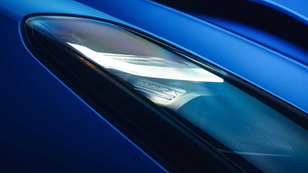 Lunga 4.412 mm, larga 1.895 mm e alta 1.225 mm (e forte di 2.575 mm di passo), la Lotus Emira ferma lago della bilancia (nella sua versione più leggera) a 1.405 kg di peso e trova il suo cuore pulsante in due possibili unità: a voi la scelta tra il V6 sovralimentato (con compressore volumetrico e con trasmissione manuale o automatica) Toyota – da 3.5 litri e in grado di sviluppare 400 CV di potenza. Il tutto per uno 0-100 km/h in meno di 4.5 secondi e per 290 km/h di velocità massima – e il 4 cilindri da 2.0 litri turbo M139 di origine AMG, capace di 360 CV di potenza e con cambio automatico a doppia frizione ad otto rapporti.
