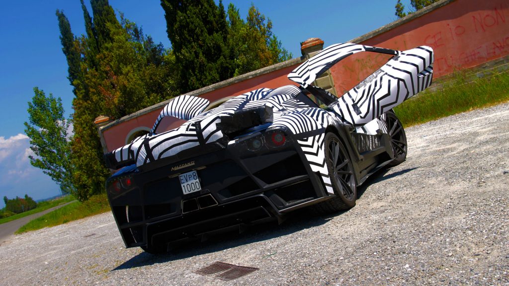 “Lo stile è un po’ strano perché io ho dei gusti stilistici abbastanza diversi da quelli della media, nel senso che mi si sono formati negli anni, sin da quando da bambino sognavo di divenire un costruttore di hypercar. Dopo ho amato automobili da rally, come la Lancia Stratos e la 037. Ho amato le supercar completamente diverse da questa come la Countach e allo stesso tempo ho sempre nutrito una passione spropositata per le Gruppo C e per le vetture di Le Mans. Restaurando soprattutto automobili da corsa degli anni ’50 e ’60 ti trovi a osservare delle linee che erano veramente innovative a quei tempi: io restaurai la Maserati 450S di Stirling Moss – il Mostro – restaurai la Ferrari Mondial, la Cisitalia 202 (ne ho fatte 4/5). Le forme arrotondate e sinuose poi mi sono entrate dentro perché le ho battute sull’alluminio, le ho accarezzate e riportate al loro originario splendore. Evantra è un po’ un connubio stilistico di tutti gli imput che ho avuto durante il mio percorso. Concettualmente volevo una vettura che fosse sì potente, ma con un passo relativamente corto per poter essere maneggevole. Io odio le vetture con il muso corto e la coda lunga e con un passo esagerato. Amo le strade collinari toscane. La cosa per me più bella è poter guidare l’Evantra su queste strade. Quindi ho mantenuto un passo corto – 2.55 metri – quello della Bugatti EB110: la dimostrazione che le vetture così possono avere prestazioni incredibili. Per fare questo abbiamo mantenuto il motore molto vicino all’abitacolo e lo abbiamo abbassato tantissimo (di solito le supercar a motore centrale hanno il serbatoio tra il parafiamma e il motore). Qui abbiamo il motore spostato in avanti e il serbatoio sopra i piedi: il che ci ha permesso di centralizzare le masse e di avere una vettura molto bilanciata. La distribuzione dei pesi è 44/56. Sulla Millecavalli arriveremo probabilmente a 50/50 perché abbiamo portato davanti il serbatoio dell’olio e altre masse, quindi la vettura è estremamente maneggevole e veloce in curva. Io volevo questo: una vettura che avesse tanti CV ma con cui potersi godere anche le curve e i tratti in cui i CV non si ha la possibilità di scaricarli tutti”.