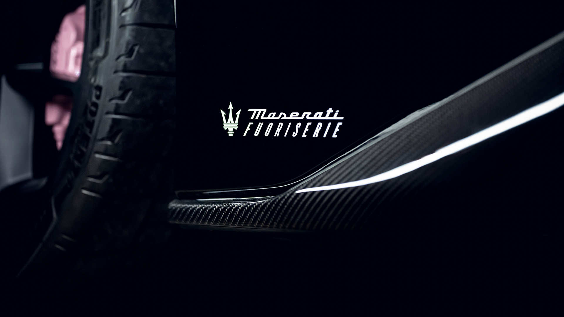 Gli interni, in pelle e Alcantara, sono neri con cuciture a contrasto, ancora una volta rosate. Gli schienali, in Alcantara, sono lavorati con laseratura tono su tono. Infine, nella zona centrale tra i due sedili, è presente il badge personalizzato del programma di customizzazione con effetto lucido-opaco: in alto, accanto al Tridente, la scritta Maserati Fuoriserie è rosa pastello, in basso il corsivo “For David” si presenta con un effetto alluminio.