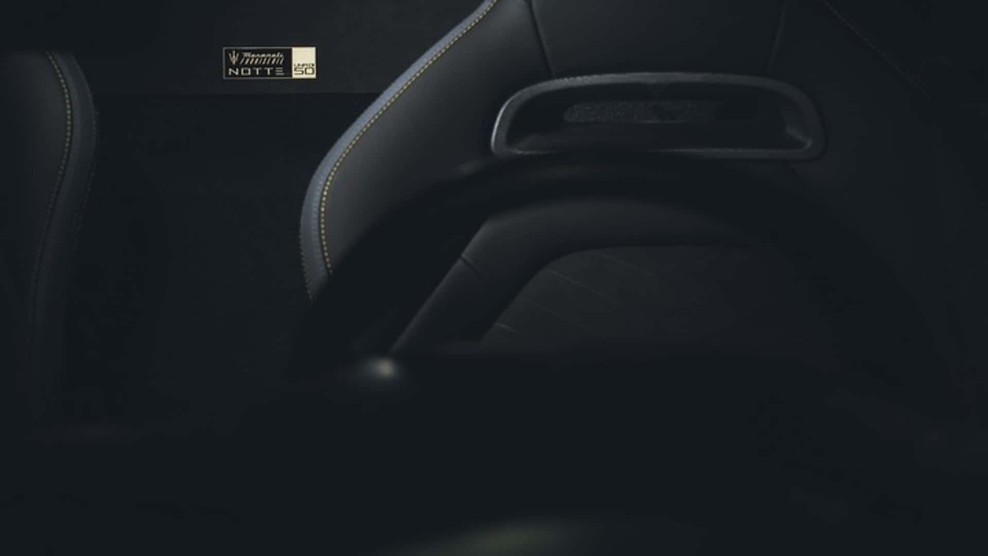 La carrozzeria presenta una vernice opaca “Nero Essenza” con tetto nero lucido e dettagli in fibra di carbonio che ne impreziosiscono l’anima sportiva. Il Tridente, i loghi laterali e la firma Maserati sono in oro bianco opaco, richiamo allo scintillio delle luci nella notte e all’eredità sportiva del marchio. I cerchi Birdcage da 20”, sono rifiniti in nero opaco con finiture oro bianco opaco abbinati a pinze freno nere.