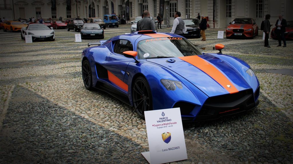 Mazzanti Automobili calca la passerella del Parco Valentino 2018 con la Evantra. Eccola live in foto nel castello del Parco del Valentino.