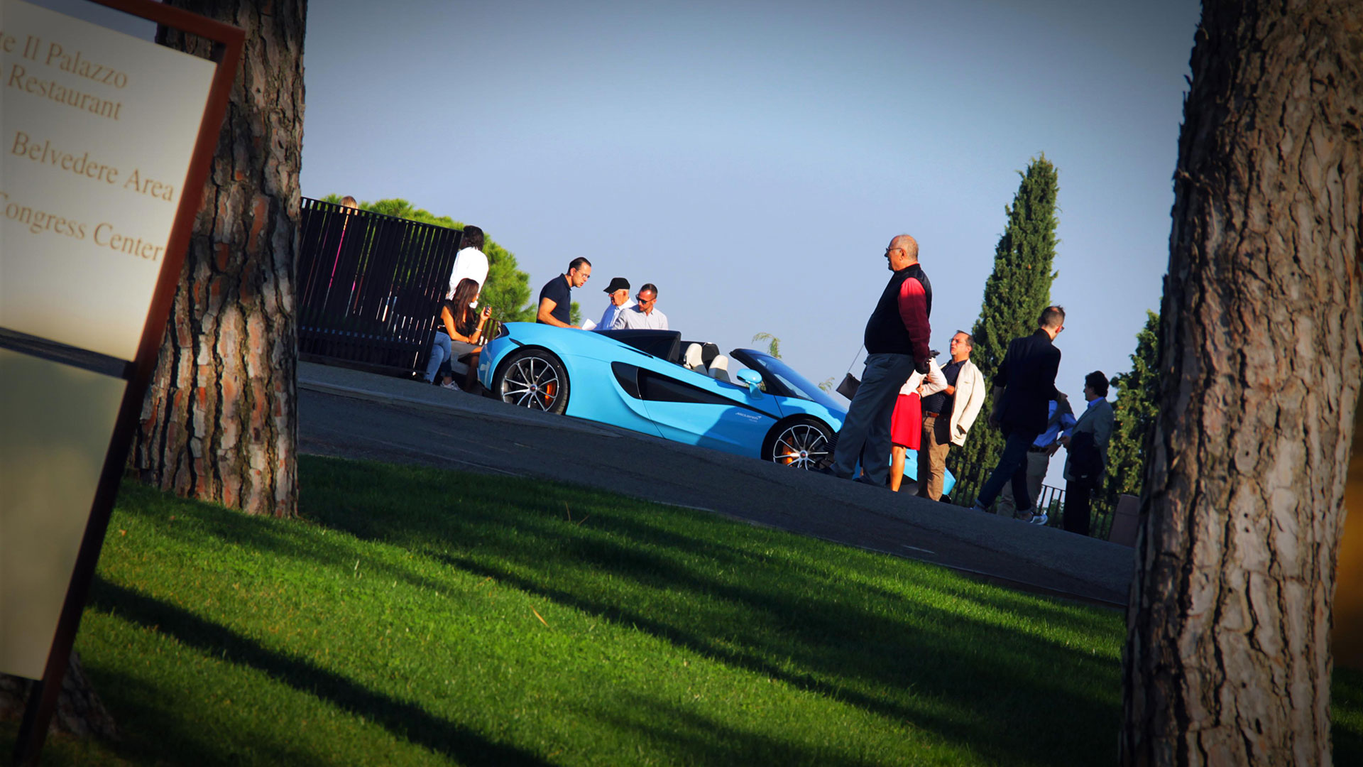 Al centro delle attenzioni lei: la McLaren 570S Spider, esposta staticamente in una posizione “protagonistica” su un terrazzo affacciato su uno sfondo tanto vasto quanto affascinante. Un connubio elegante suggellato dalla presenza ai lati di questa di un altro modello della gamma Sports Series, ovvero la 570S Coupé, a sua volta affiancata sul palco da due 720S (di cui vi parleremo dettagliatamente in un servizio dedicato). Test drive e sonorità roche dei propulsori V8 biturbo britannici hanno chiuso il cerchio di una giornata dedicata agli amanti dei motori e del bello, peraltro coronata da un clima estremamente mite e soleggiato che inneggiava più alla primavera che all’autunno nel quale ci troviamo.