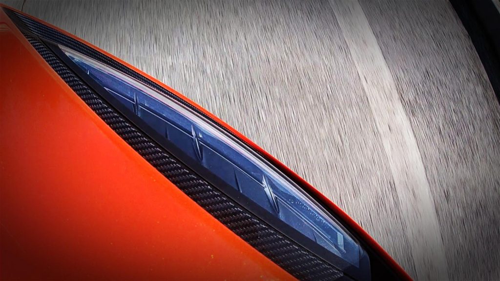 L’abitacolo (in cui permea tantissima luce naturale, grazie a numerose soluzioni trasparenti, tra cui il tetto in vetro – che si può oscurare elettronicamente tramite pressione di un pulsante – che contribuisce a garantire l’esperienza di guida di una spider anche a tetto alzato, mentre un wind-shield abbattibile in maniera indipendente all’hard top consente anche di arieggiare l’interno senza dover abbassare i finestrini laterali. Con tanto di un vantaggioso incremento della sonorità del propulsore a bordo) è tanto racing quanto lussuoso allo stesso tempo. Essenziale ed al contempo ricercato. Non esibisce inutili fronzoli (mostrando un’estrazione molto diretta dal DNA F1 del marchio) ed al contempo coccola i suoi occupanti in un ambiente confortevole e raffinato. Un mix di Alcantara e pellami domina infatti il cockpit, che esibisce con orgoglio anche il massivo impiego della fibra di carbonio, che viene lasciata libera alla vista. Il tutto in un equilibrio di schermi digitali e di pochi selettori metallici per gestire modalità di marcia, infotainment [completo, ma perfettibile in termini di reattività], parametri di bordo e driving mode. Questi ultimi sono tre per telaio [Handling] e motore [Powertrain] e lavorano in maniera indipendente tra di loro. Basta cliccare sul pulsante “Active” per “armarli”. Si passa dal più versatile Comfort al più estremo Track passando attraverso quello più godibile in strada, ovvero Sport. I piccoli oggetti trovano tutti spazio al centro del tunnel, mentre le giacche possono essere riposte anche dietro i sedili o nel vano bagagli anteriore, molto profondo ed accogliente e più che sufficiente per concedersi un weekend fuori porta in due.