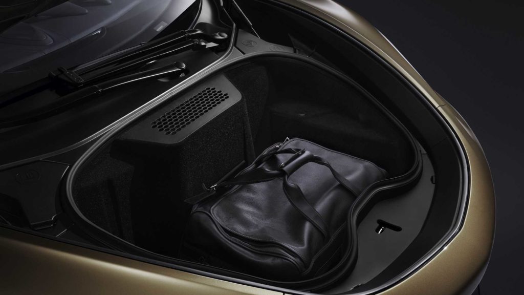 Grazie ad un ampio spazio di carico, la McLaren GT si propone infatti di sorridere ai grandi chilometristi che non vogliono saperne mai e poi mai di rinunciare alle prestazioni, al punto infatti che nel DNA di questa vettura troviamo i cromosomi Speedtail. Forte di soli 1.530 kg di peso (grazie anche ad un telaio monoscocca MonoCell II-T in fibra di carbonio a resistenza e rigidità elevati), la McLaren GT promette fino a 570 litri di carico (ben 200 in più della 570GT) tra vano anteriore (150 litri) e posteriore (420 litri), quest’ultimo posto al di sotto di un portellone in vetro, con funzione soft-close di serie e sistema di apertura e chiusura elettrico opzionale, al di sotto di cui possono trovare posto anche la sacca da golf e gli sci.