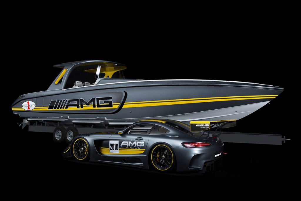 Connotato da un corpo pensato per richiamare da vicino la vettura sportiva di Affalterbach, il motoscafo griffato Mercedes-AMG e Cigarette Racing è stato portato al debutto in società al Miami Boat Show 2016 e prende il nome di “Cigarette Racing Team 41 ‘SD GT3“.