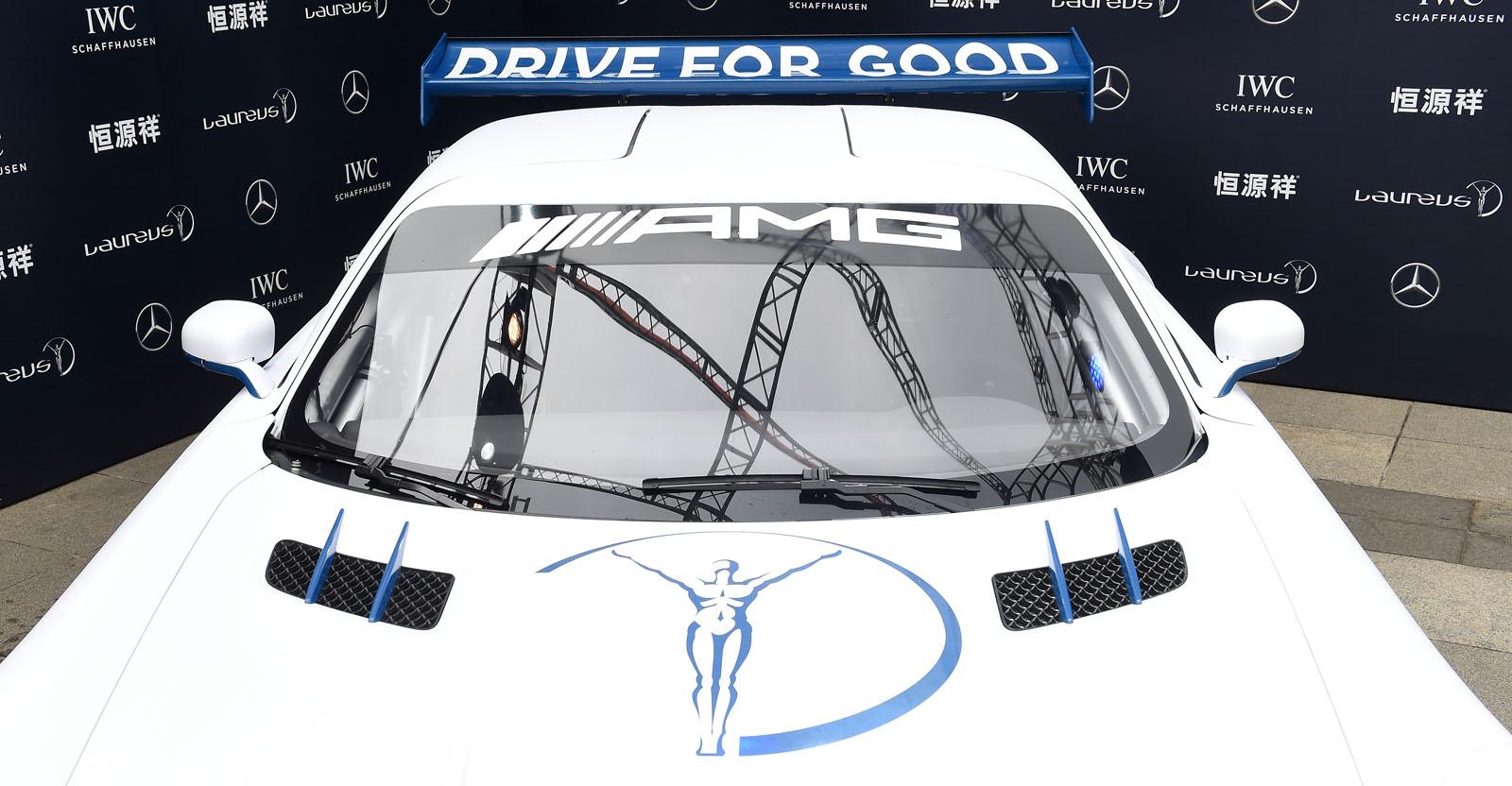 La vettura, caratterizzata da una colorazione bianca e blu, oltre che dotata dei loghi di AMG e della Laureus Sport for Good Foundation, verrà in futuro impiegata nel corso di alcuni eventi promozionali (sempre con finalità benefiche) e rappresenta il 100° esemplare della SLS AMG GT3.
