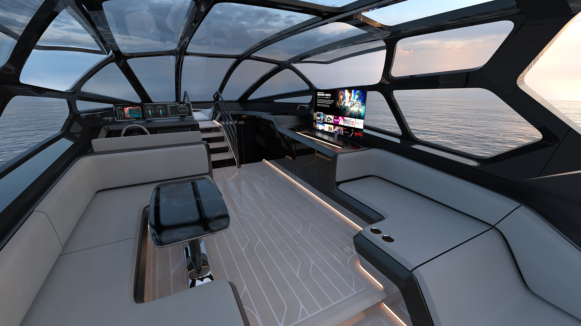 Il design dello yacht Mirarri fonde strutture futuristiche e organiche nel massimo lusso. Incorpora materiali avanzati come fibra di carbonio, kevlar e titanio, bilanciando leggerezza e resistenza strutturale. Al suo centro si trova una sovrastruttura a tutto baglio ornata da una cupola di vetro, ispirata all’intricata struttura ossea degli uccelli. Questa caratteristica non solo migliora l’integrità strutturale, ma inonda anche gli interni di luce naturale. Il risultato è una meraviglia architettonica che conferisce all’ambiente di bordo spaziosità e grandiosità. Gli arredi sono integrati per creare un senso di continuità e armonia in tutta la nave. Ogni elemento completa il successivo, valorizzando lo yacht con fluidità e raffinatezza. Par quanto concerne l’intrattenimento all’aperto, gli occupanti possono godere di un’area barbecue e di un bar situati sul ponte di poppa, inoltre l’accesso centrale garantisce un comodo passaggio verso la parte prodiera dello yacht.