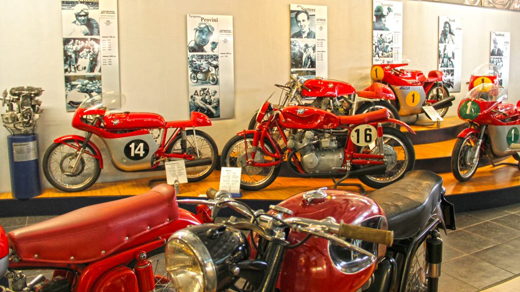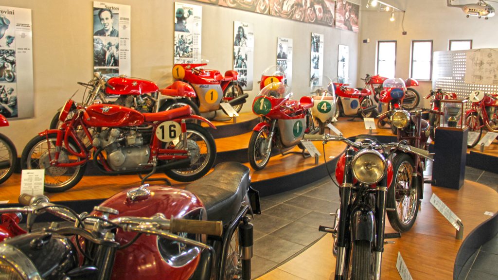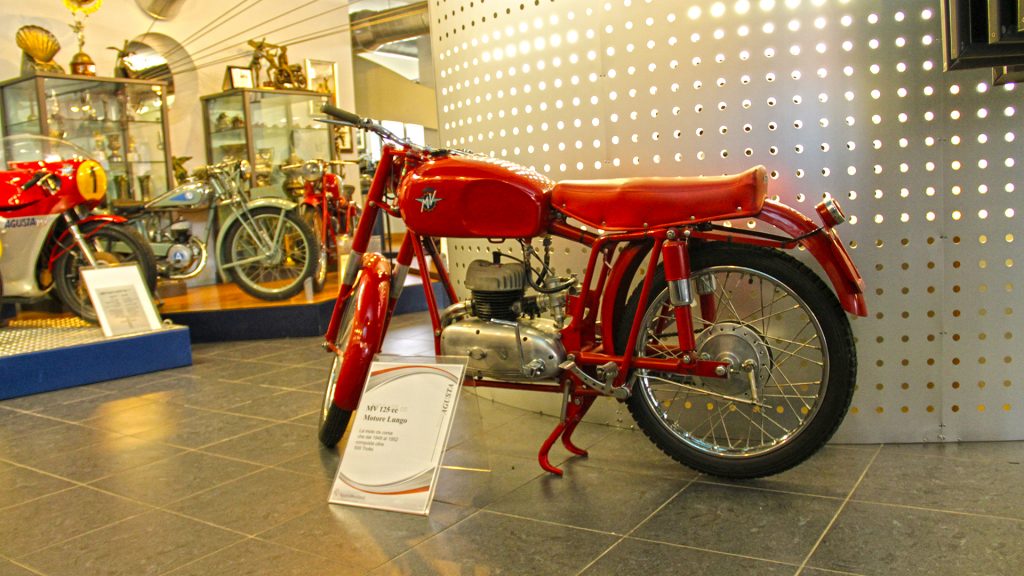 Questo genere di attività commerciale – in particolar modo nel corso degli anni ’50 – ha contribuito in modo determinante all’acquisizione della licenza Bell-Helicopter nel 1952 e al rilancio dell’attività aeronautica marchiata Agusta. Un’attività commerciale e sportiva che può essere ammirata (in forma ovviamente sintetizzata e con gli scatti della nostra gallery) tra i corridoi del Museo Agusta di Cascina Costa, al cui interno trovano spazio più di 60 motocicli e numerosi cimeli aeronautici: si va dalla già menzionata MV 98 2 tempi a due valvole del 1946 per arrivare sino alla MV 48 “G” ciclomotore 2 tempi del 1971, passando per veri e propri gioielli stradali e sportivi che hanno fatto sognare (e continuano a farlo) appassionati di tutto il Mondo, come la MV 175 “CSS” Disco Volante del 1954, o la MV 500 4 cilindri 4 tempi sei valvole da corsa del 1964, tanto per citarne alcune. Tutte affiancate sullo spazio espositivo da numerose testimonianze aeronautiche che dal passato tracciano una linea temporale che scorre verso il presente del marchio Agusta.