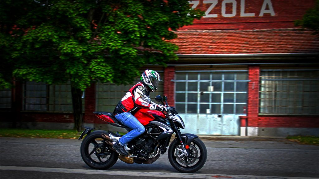 Una storia che si riflette e che si racconta in tutto il territorio varesino e sulle strade che collegano l’uno all’altro i luoghi della tradizione di un marchio con un passato aeronautico lungo cui abbiamo messo alla prova la nuova MV Agusta Brutale 800. Strade che hanno un “sapore” molto particolare: quello di una tradizione di un’Italia che si vuole raccontare e che, come le sue aziende, affonda saldamente le proprie radici in un glorioso passato che fa da base per un futuro che solo chi possiede una storia alle spalle può permettersi di scorgere. Due spazi temporali che possono essere chiaramente letti attraverso il presente rappresentato dalla naked varesina di medio/grande cubatura: un prodotto che più che una moto sembra una vera e propria scultura e che porta intrinsechi in sé i valori di quel buon gusto tutto italiano che da altre parti del Mondo cercano (invano) di copiare da anni.