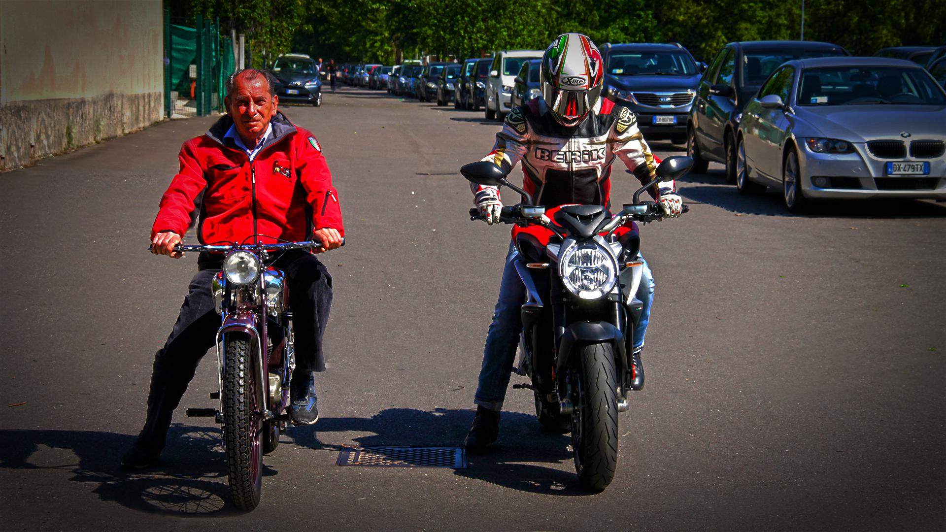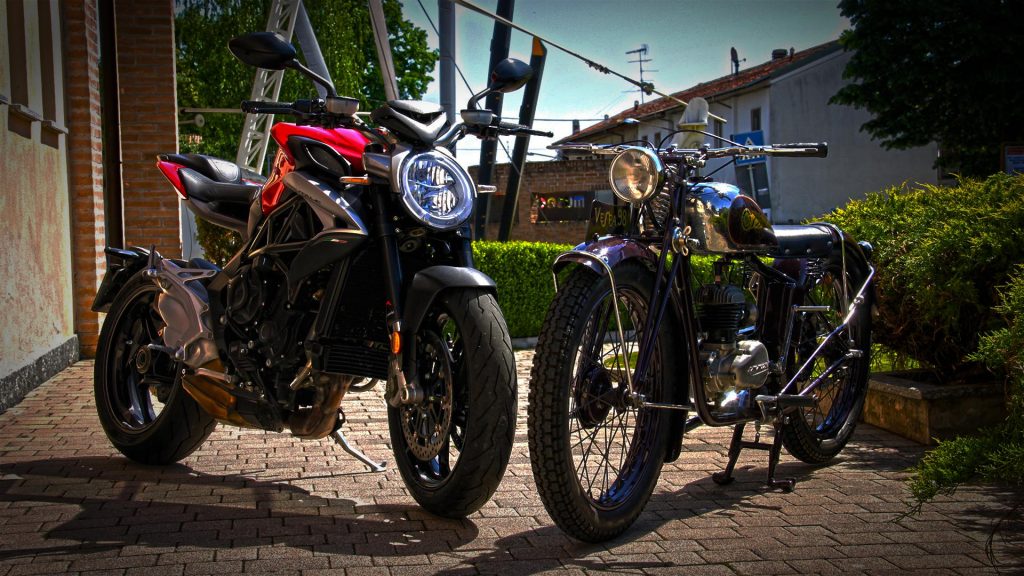 Il passato incontra il presente al Museo Agusta di Cascina Costa. In foto: la 98, prima MV prodotta e la Brutale 800 M.Y. 2016
