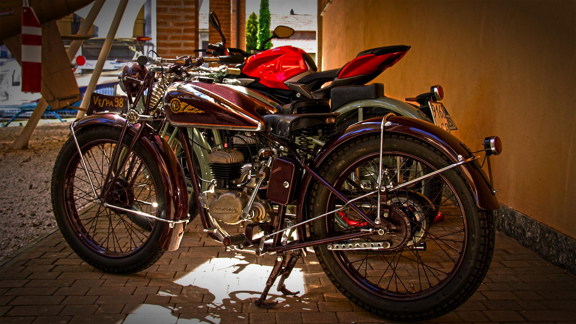 La Brutale scorre felina lungo i viali del Museo del Volo (ci piace pensare che più di un qualcuno, da lassù, stia sorridendo mentre calchiamo l’asfalto di tali luoghi su questa moto) e il suo roco rumore di aspirazione fa pervenire una piacevole aria di casa ai corpi farfallati: tra le mura di questi stabilimenti (ove sono attualmente gelosamente custoditi oltre 70 velivoli ad ala fissa e rotante di vario tipo – ma anche auto, moto e treni – che altro non vogliono che mostrarsi agli occhi del grande pubblico in tutto il loro splendore), che si affacciano sull’Aeroporto Internazionale di Malpensa, si cela infatti un altro grande pezzetto di storia dell’aviazione. Qua vedevano la luce i velivoli della Caproni: dal Ca.1 (il primo biplano prodotto dal marchio, nonché l’aereo più antico conservato in Italia) al Ca.90 (il biplano più grande mai costruito) passando per le eliche in legno lavorate con precisione certosina. Una meravigliosa realtà che negli anni ’80 divenne di proprietà Agusta e che nel 2005 installò il primo tassello nel mosaico che la portò poi a divenire il meraviglioso Museo del Volo che conosciamo oggi.