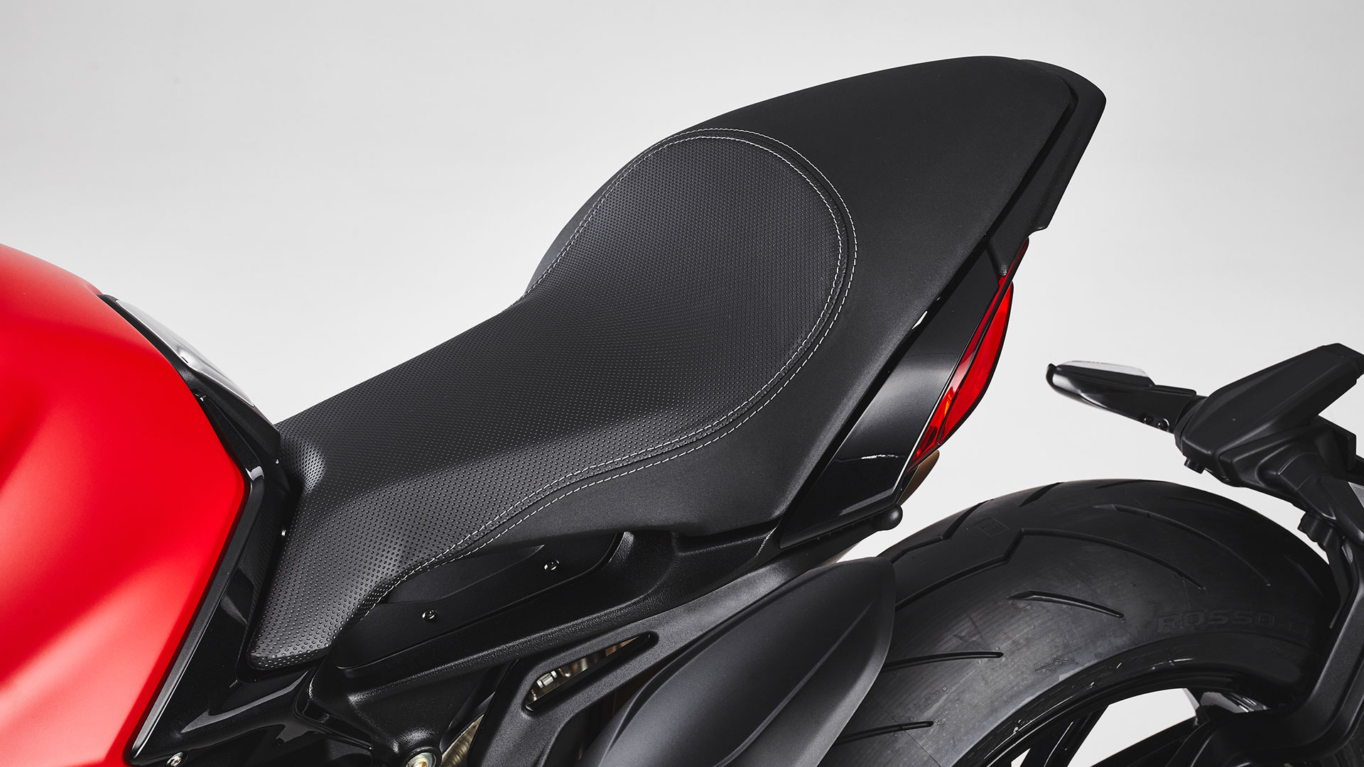 La sella con imbottitura schiumata di nuova generazione, i gruppi ottici full-LED, l’ABS Continental e gli inediti blocchetti elettrici completano la dotazione di una moto che ferma l’ago della bilancia a quota 175 kg a secco. Tre le versioni, come dicevamo, si parte dalla entry-level Rosso da 112 CV di potenza e 8.7 kgm di coppia per arrivare alla più raffinata RR SCS, con frizione che consente di dimenticare l’utilizzo della leva (anche in fase di arresto o partenza) e con launch control. A chiudere il cerchio la più sportiva RR SCS RC, prodotta in sole 200 unità con grafiche e dotazione esclusiva.